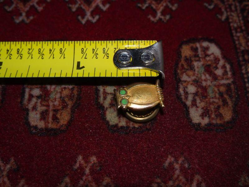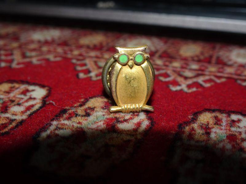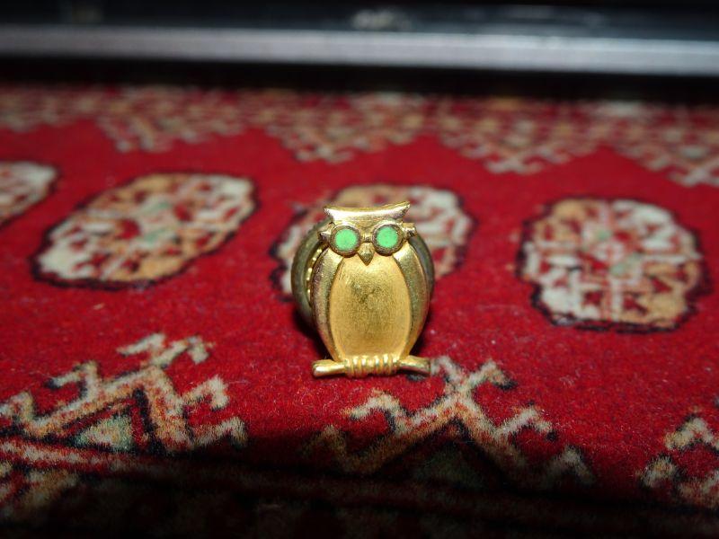 Gold Filled 1/20 10K Owl Screw-back Pin, Green Eyed Hooter, Hoot Hoot!