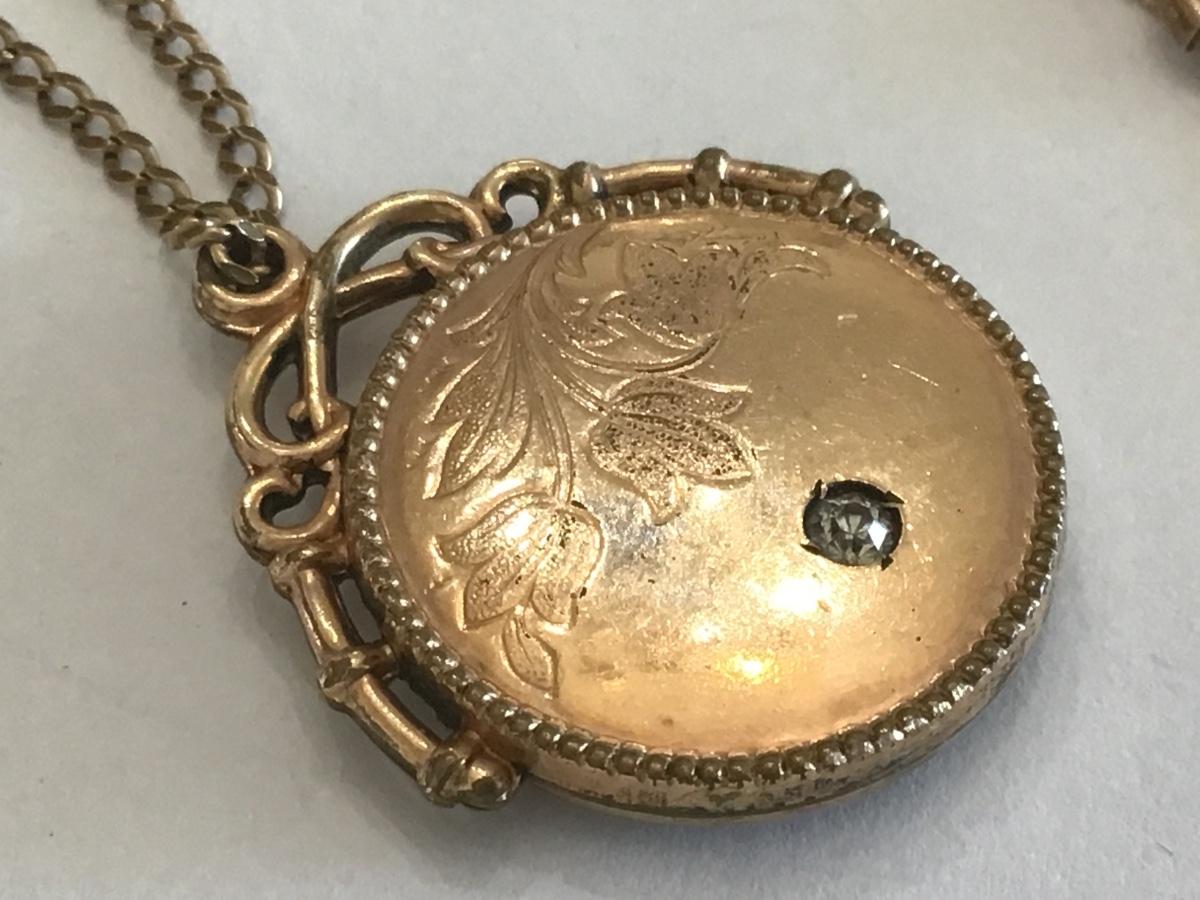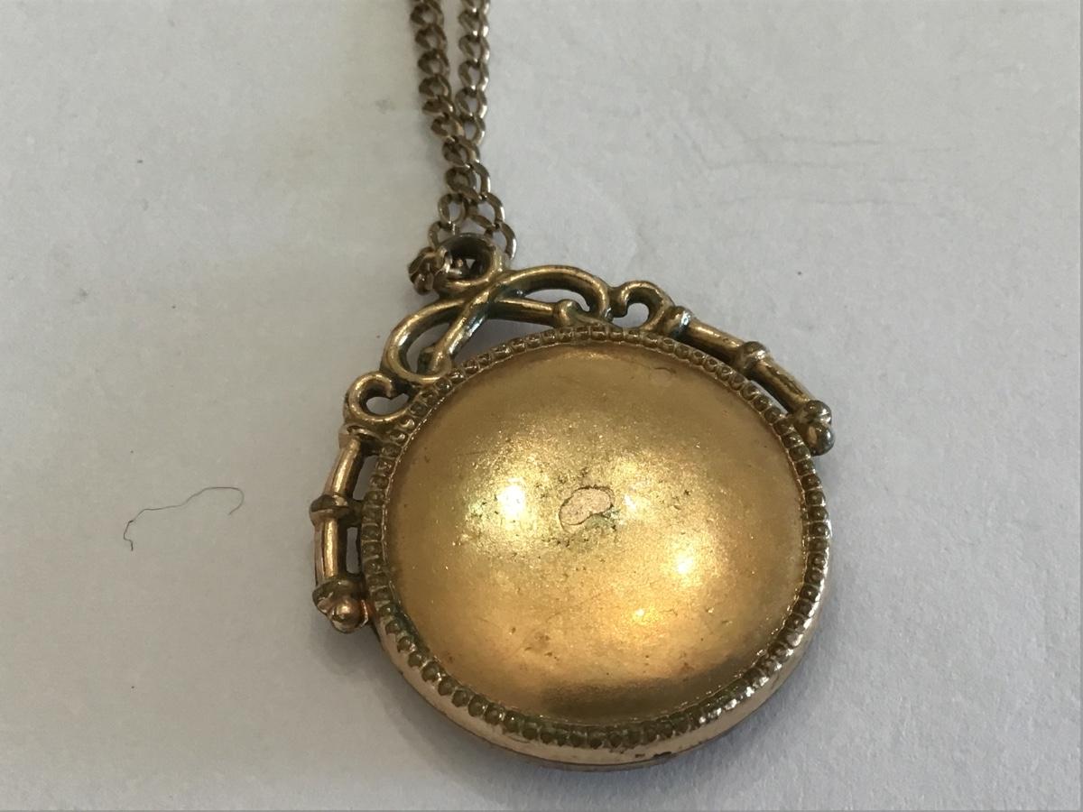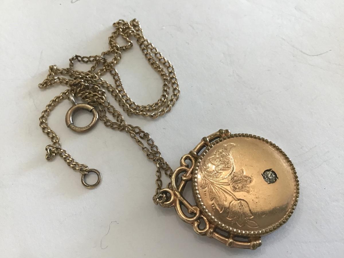 Gold Filled Antique Pendant And Chain Scroll Tiny Stone
