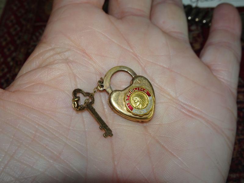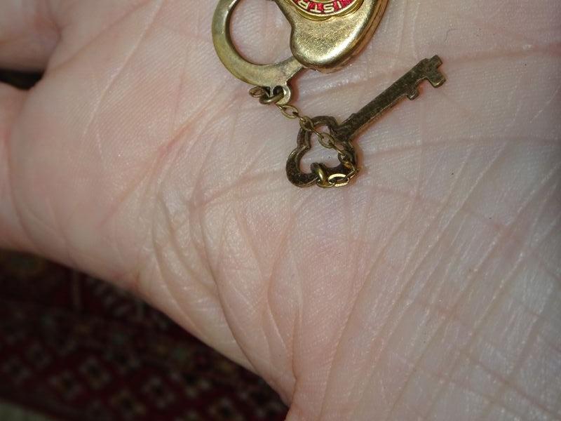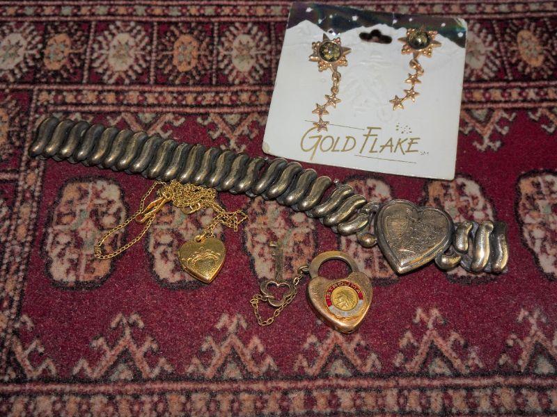 Gold Filled, Gold Tone Jewelry Lot, Key & Heart Fraternal Locket, Heart Bracelet, 14K GF Gold Flake Earrings, Gold Done Heart Necklace
