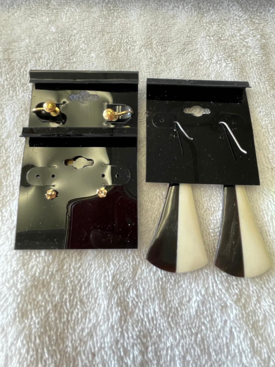 Ivory & ebony earrings. Pierced.