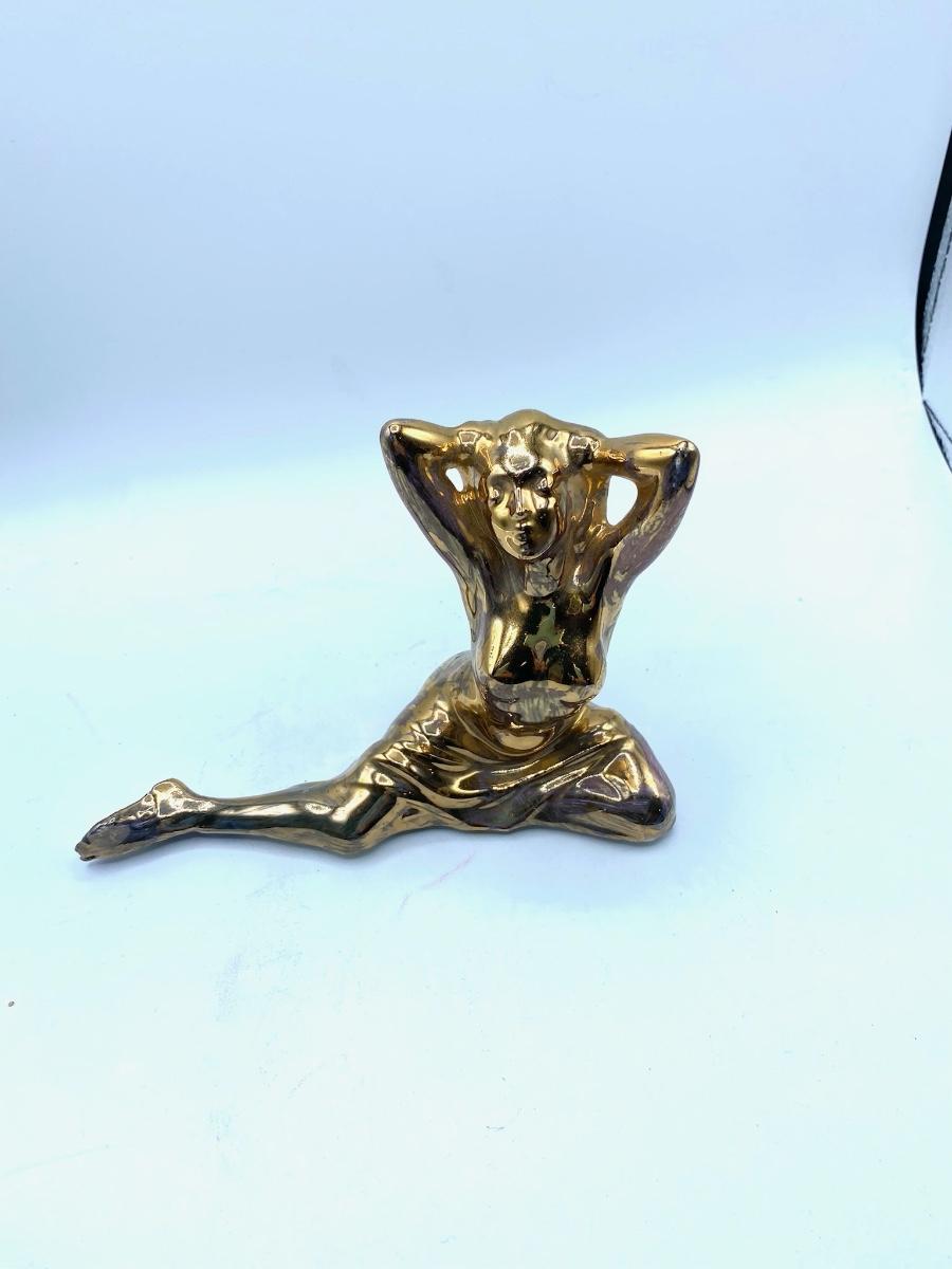 Gold Finished Figural Sculpture of Seductive Woman