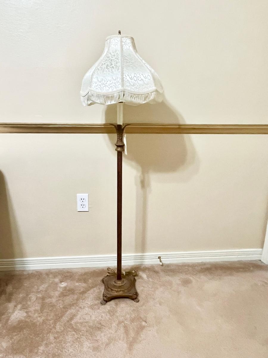 Gold Floor Lamp With Fringed Shade
