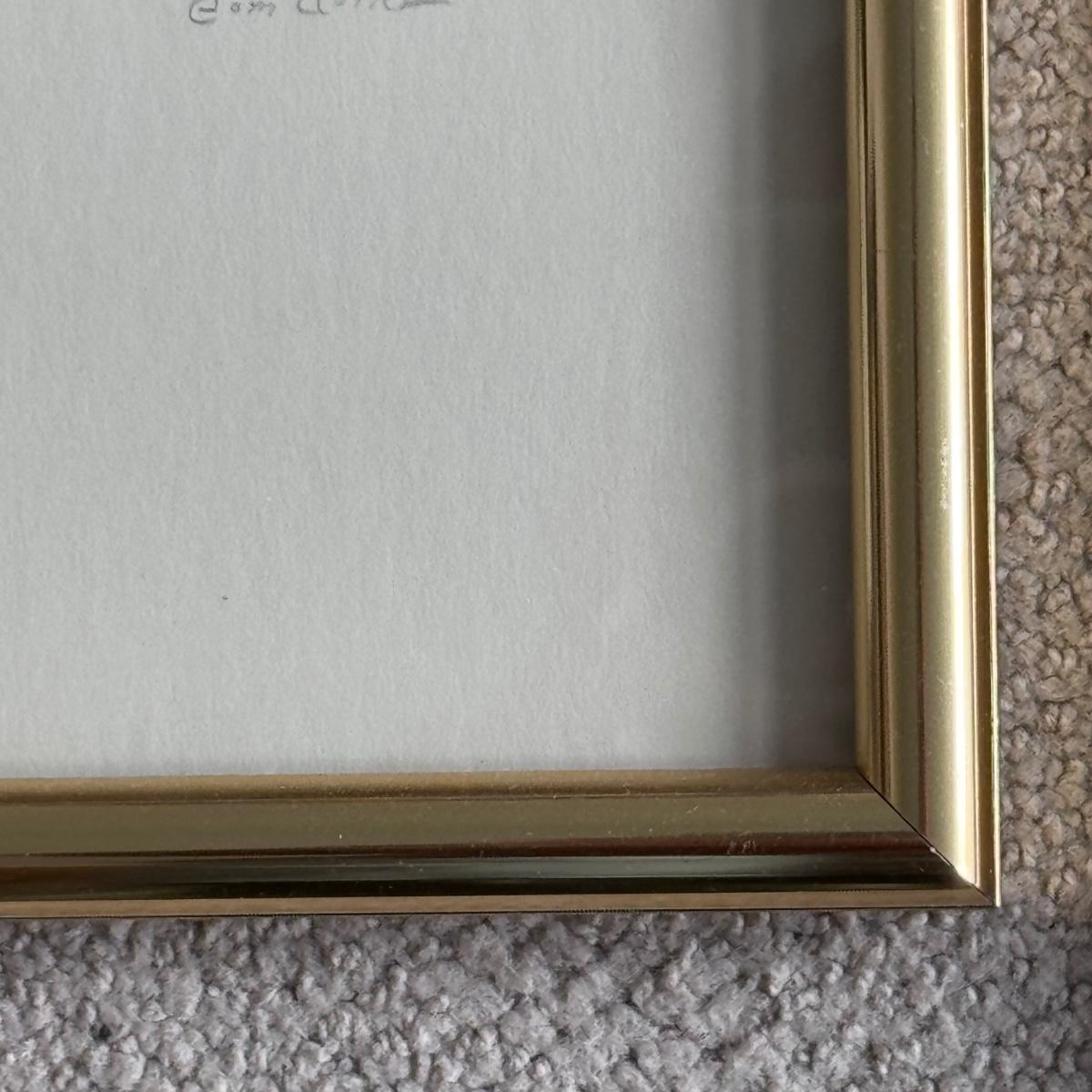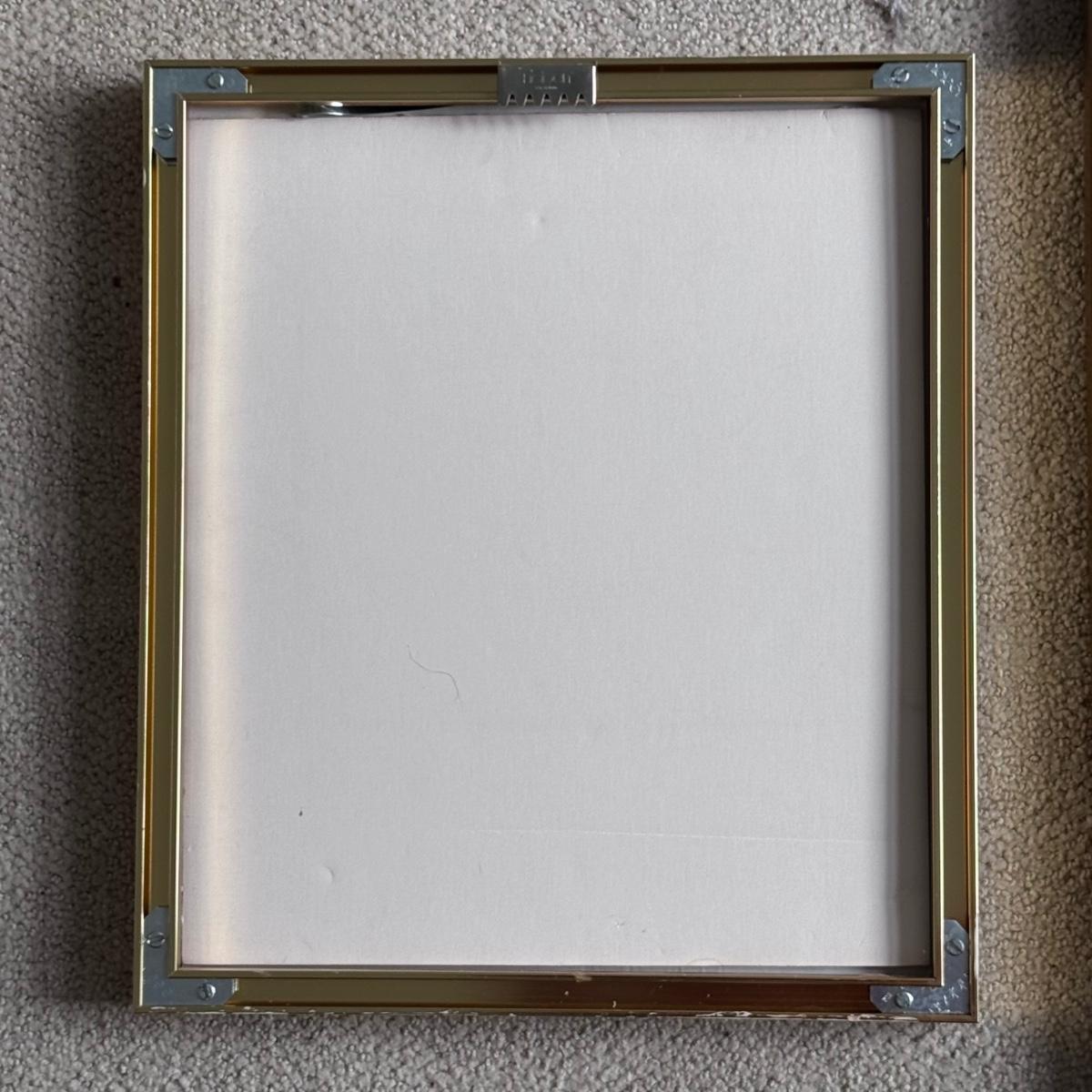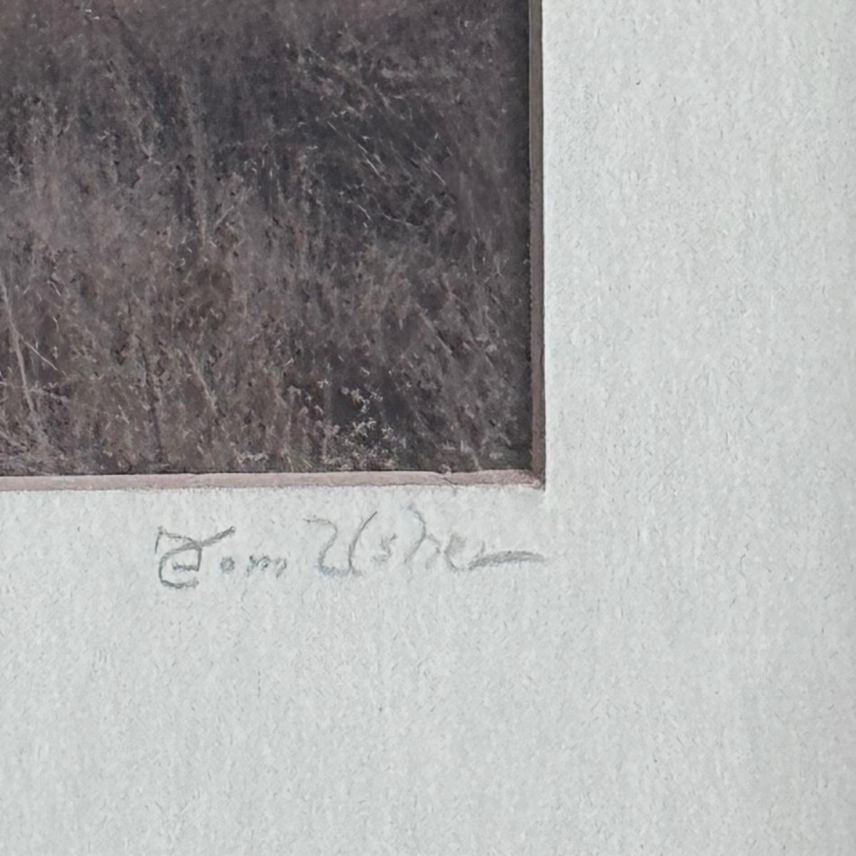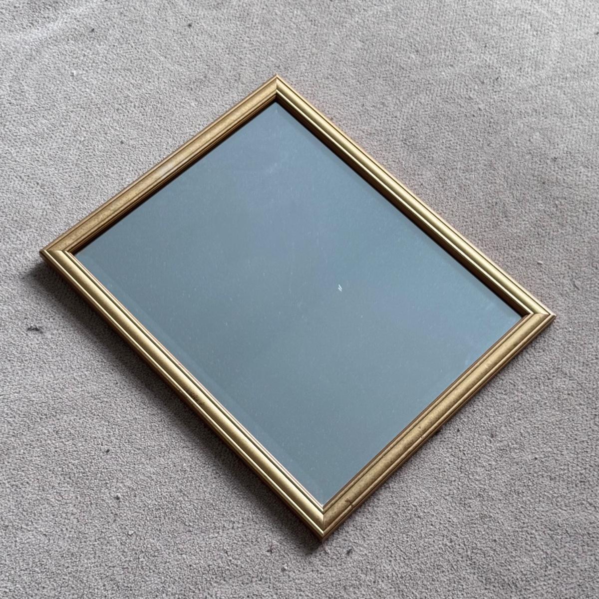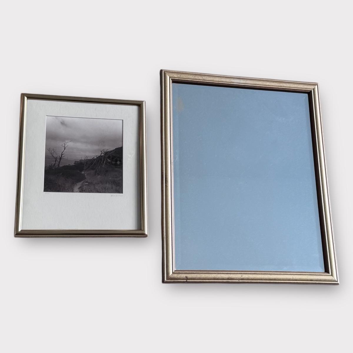 This lot includes one mirror framed in a gold painted wooden frame and one framed photograph that appears to be signed Tom Usher. The photograph is matted, protected with glass, and has a gold metal frame. The mirror is the largest item that measures 18” x 21.5”H. Shipping available. Shipping can be costly. We suggest contacting our preferred local shipping provider, Postage Express, with dimensions and getting an estimate before bidding: (828) 255-9250 or shipping@postageexpressnc.com.