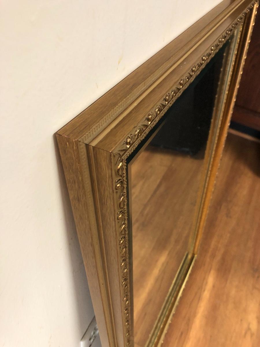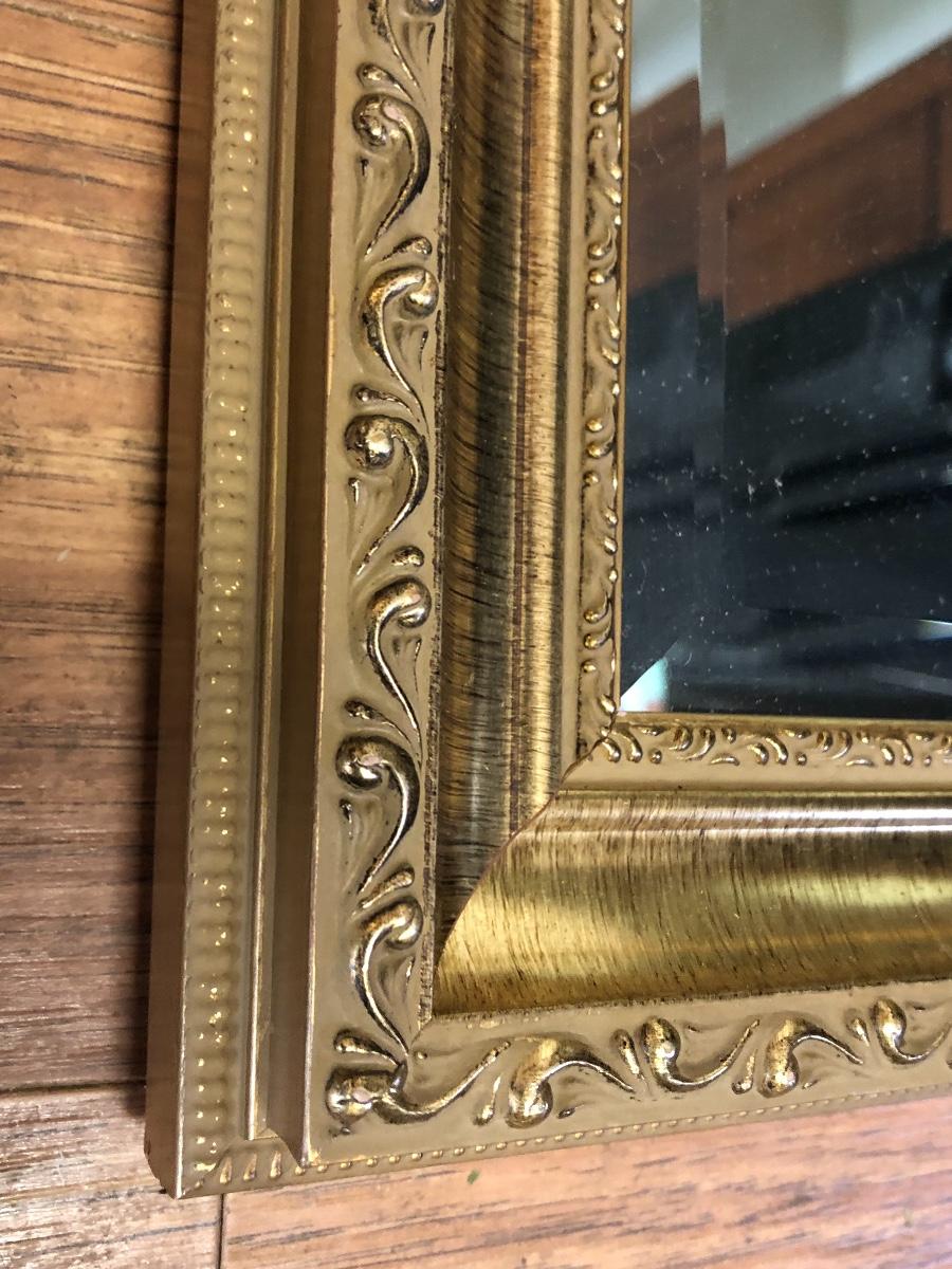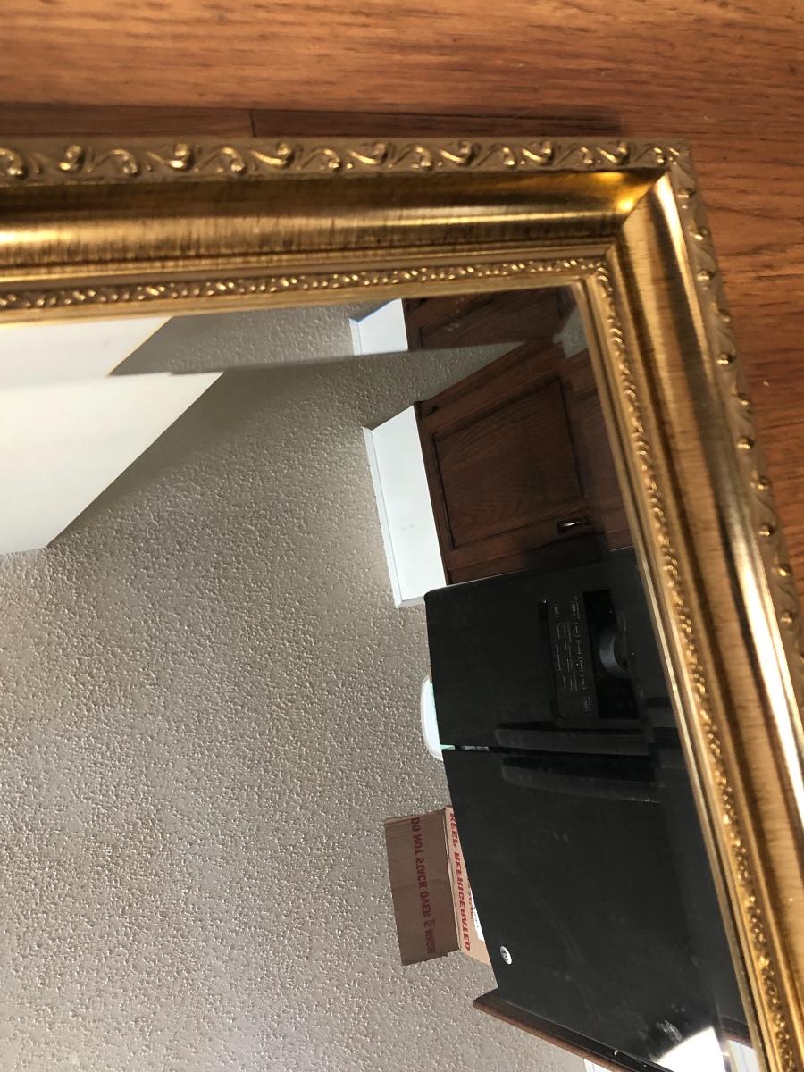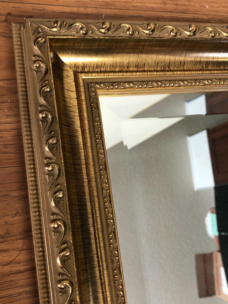 Dimensions are 21.5” x 33.5”; mirror has beveled edge. Note ornate frame. Local pick up only.