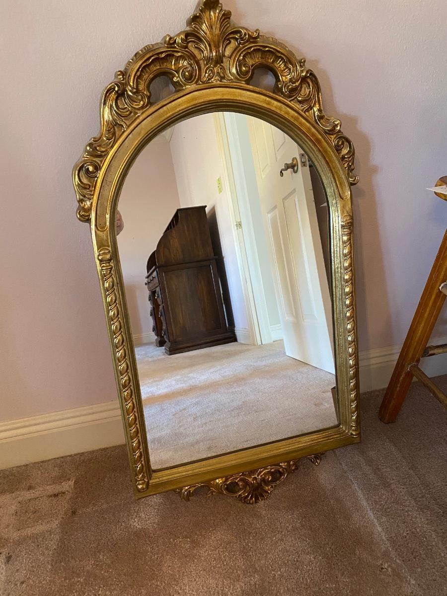 Gold framed mirror. Approx 37h x 19-1/2w. Exc condition