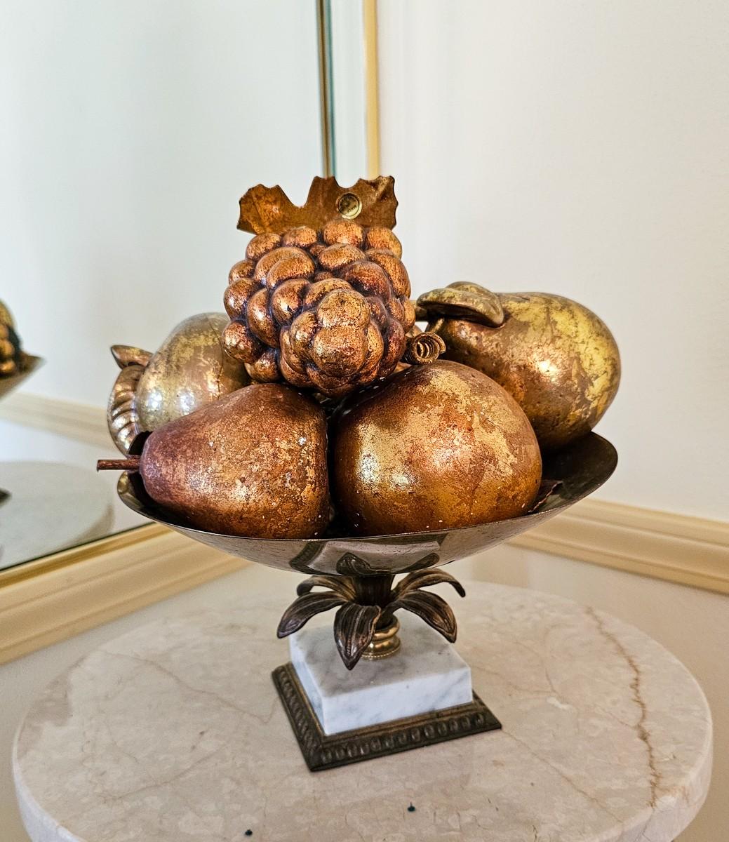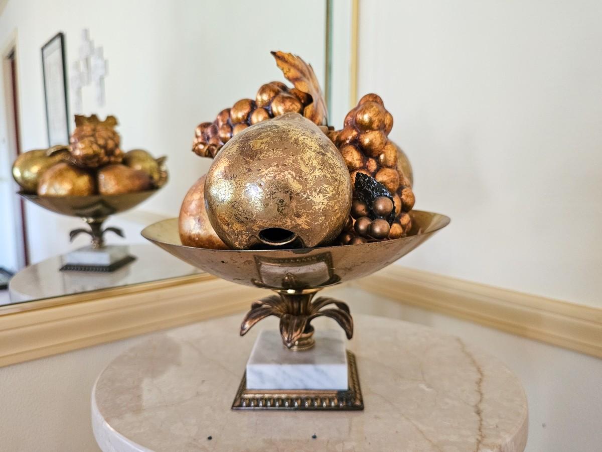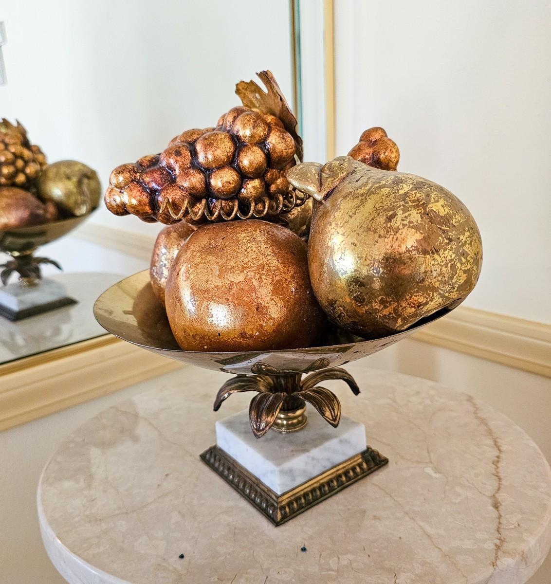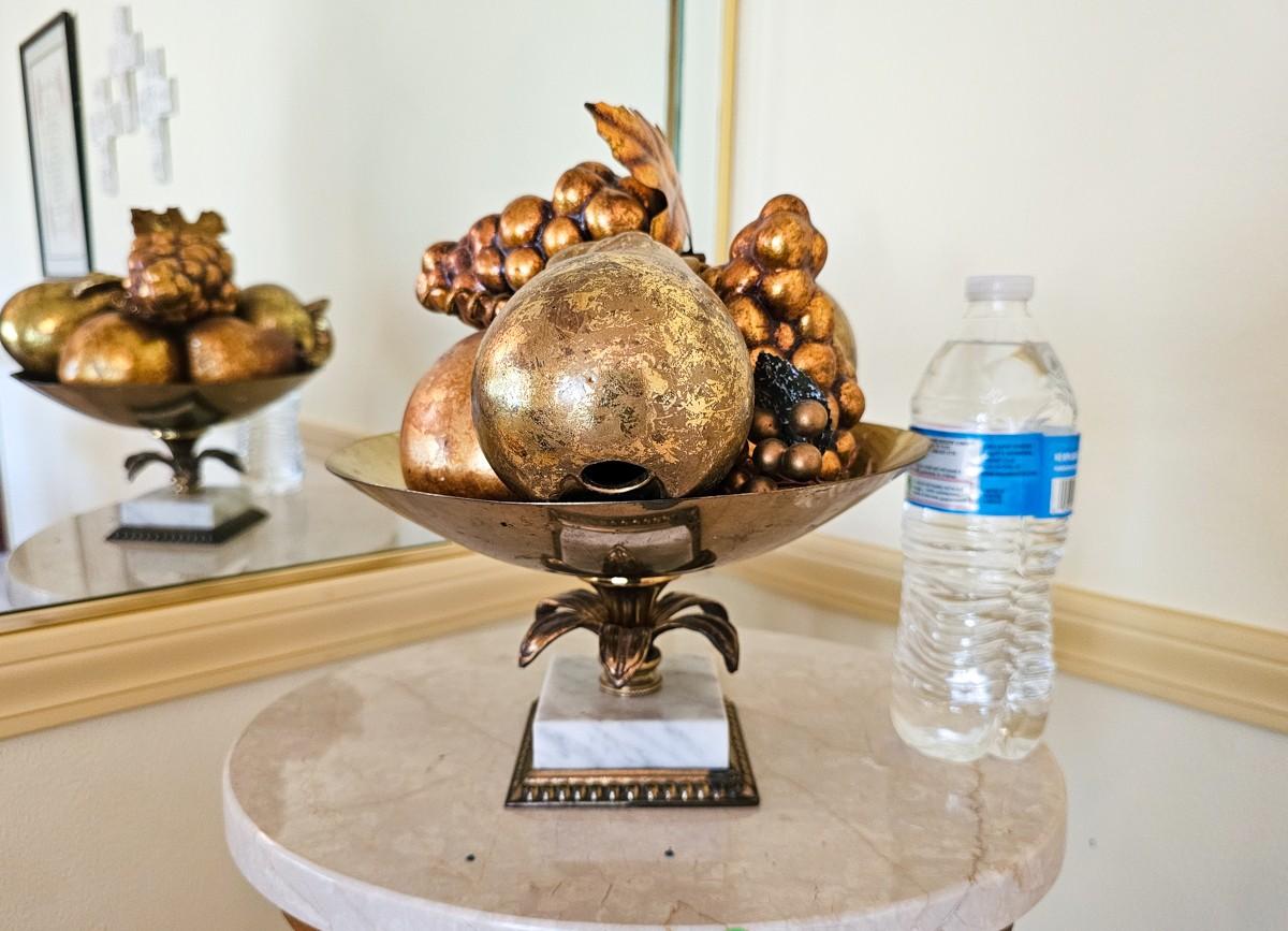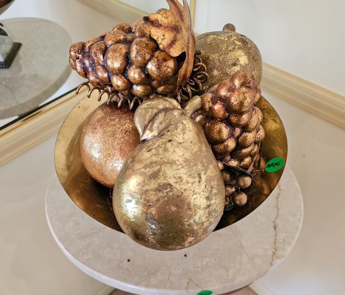 Vintage gold faux fruit in brass and marble dish. 11" W x 10" H