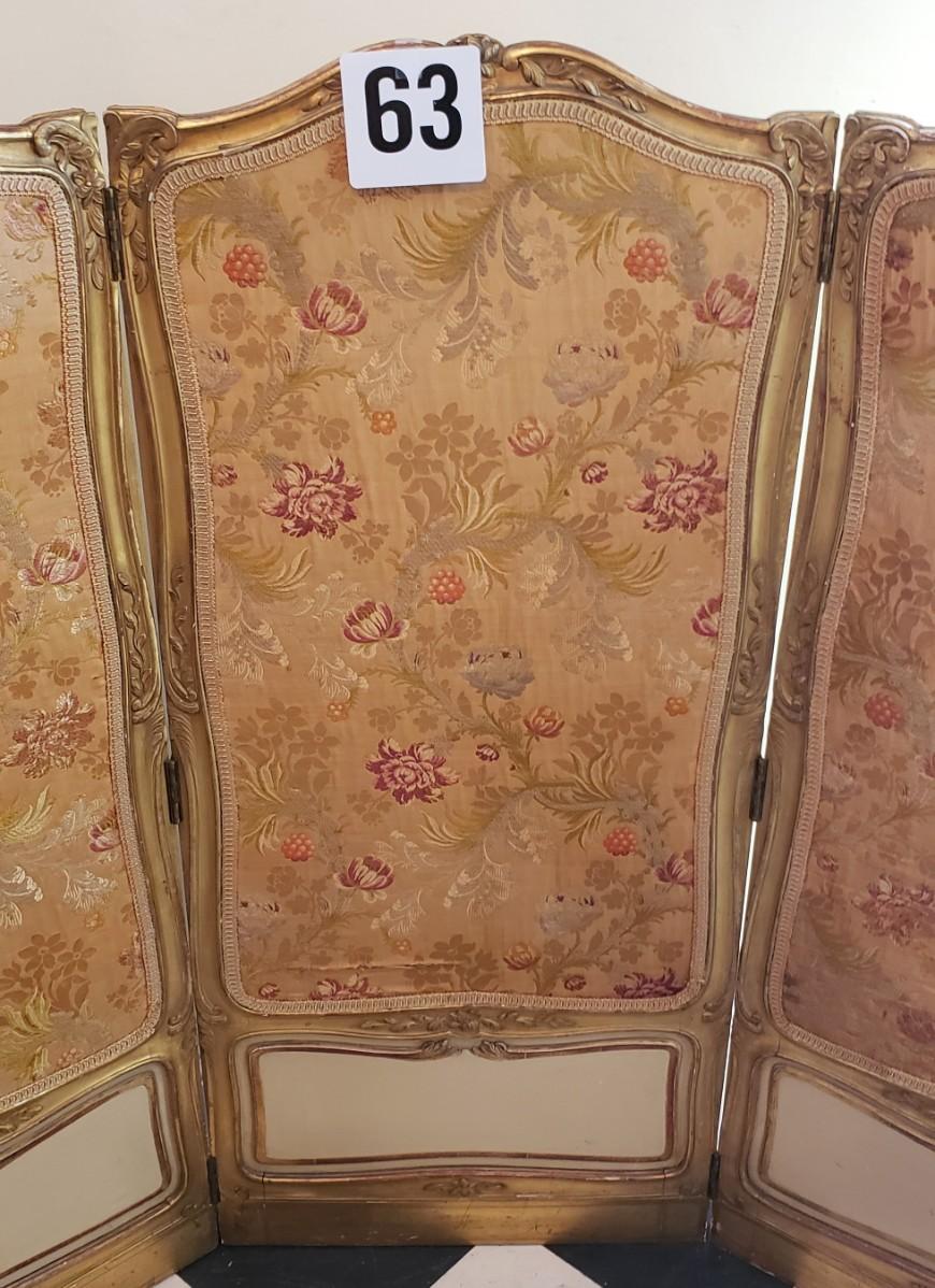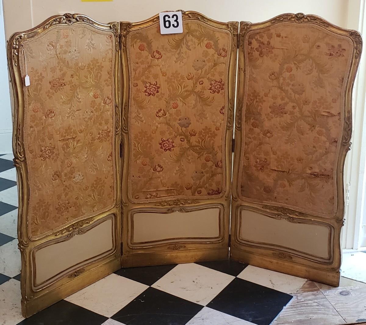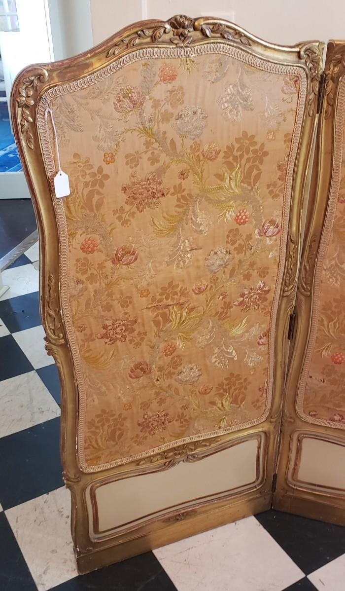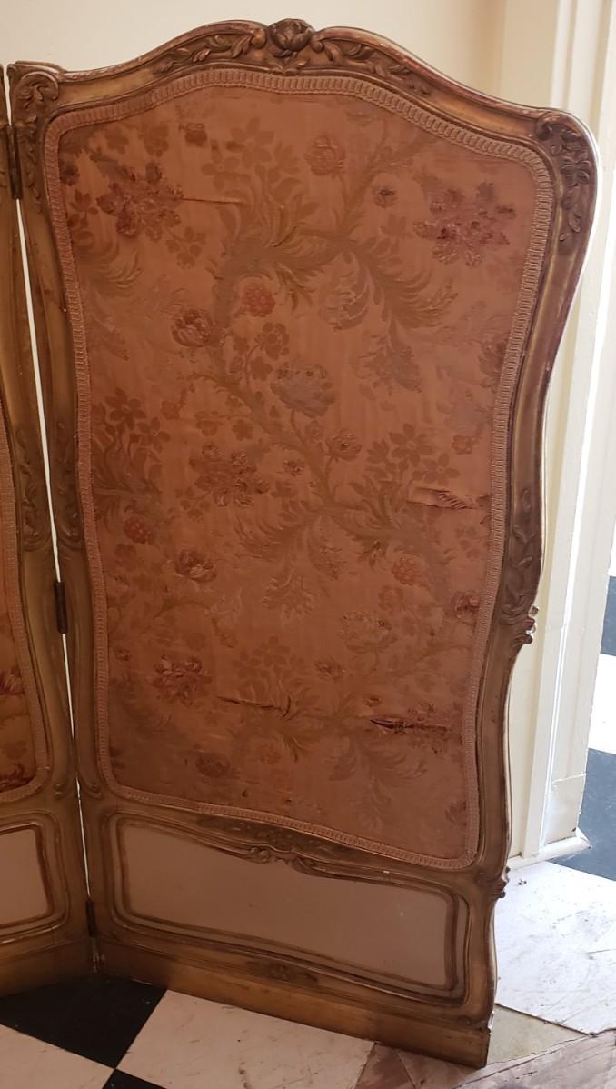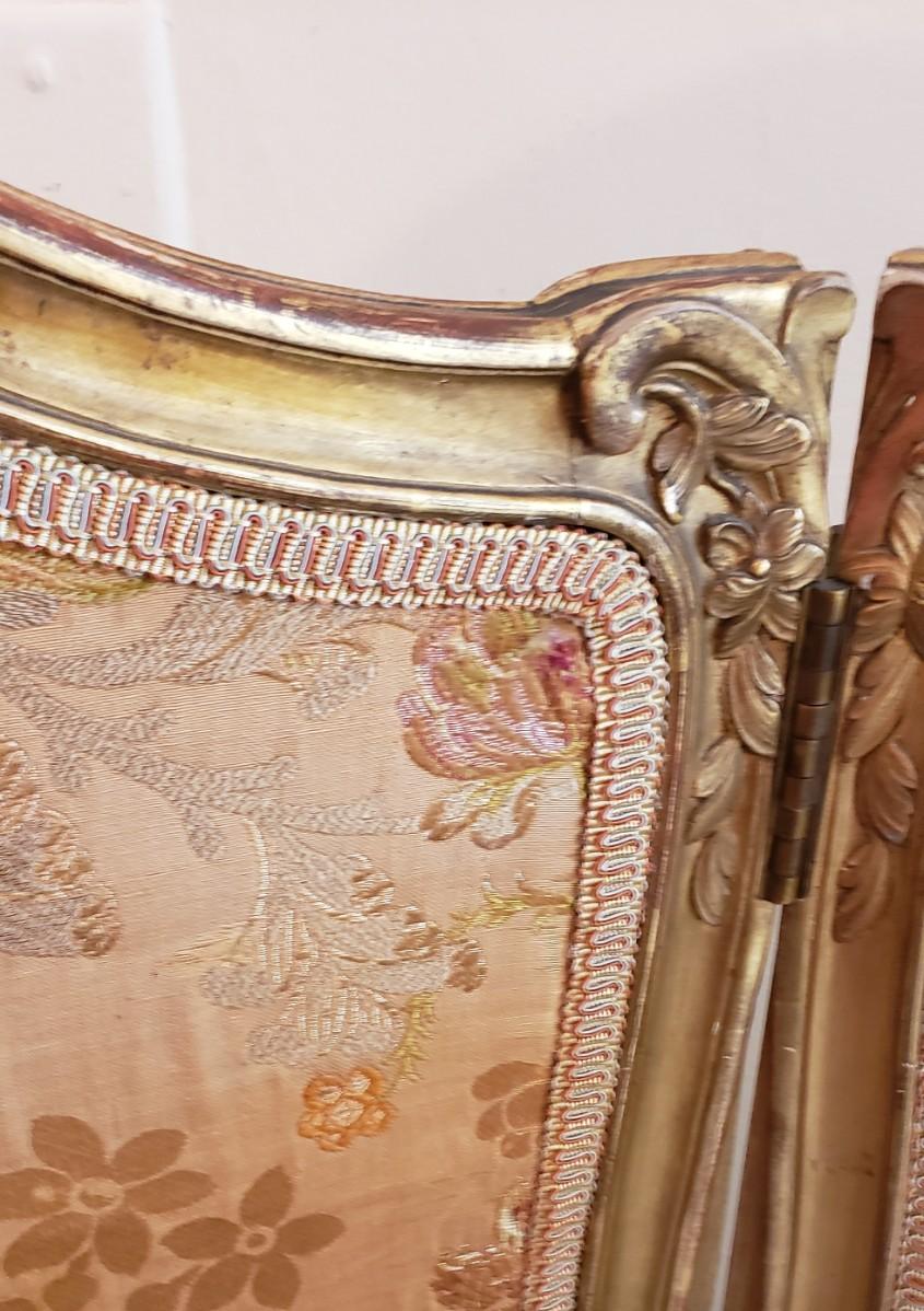 Gold Gilt 19th Century French Screen with Silk Fabric Lot, Screen Size 51 1/2 x 66 1/2