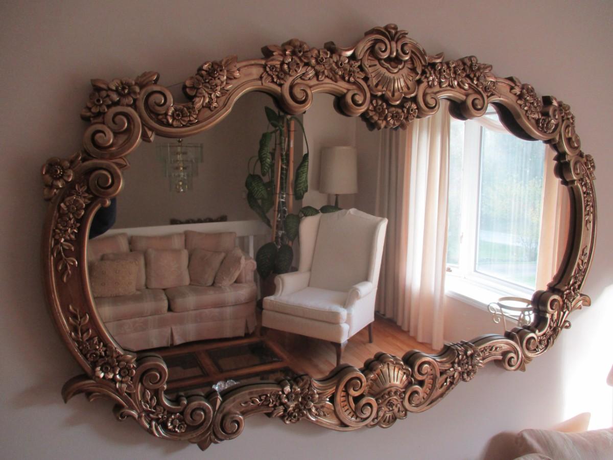 Impressive Large Ornate Gilded Wall Mirror - A. Frame is plastic/composite. There are a set of stairs out of the house and down the front landing for removal.