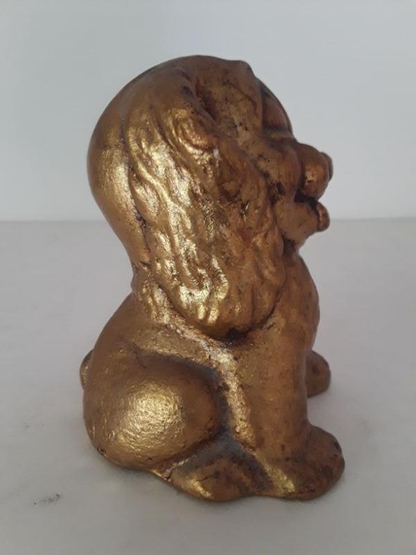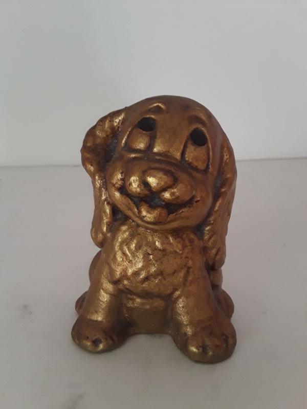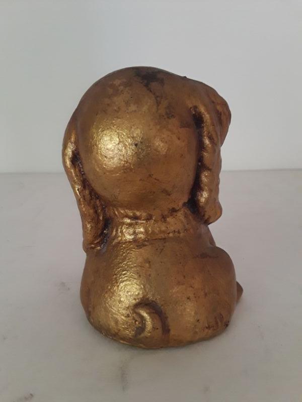 Cute Midcentury happy puppy figurine. Painted gold.