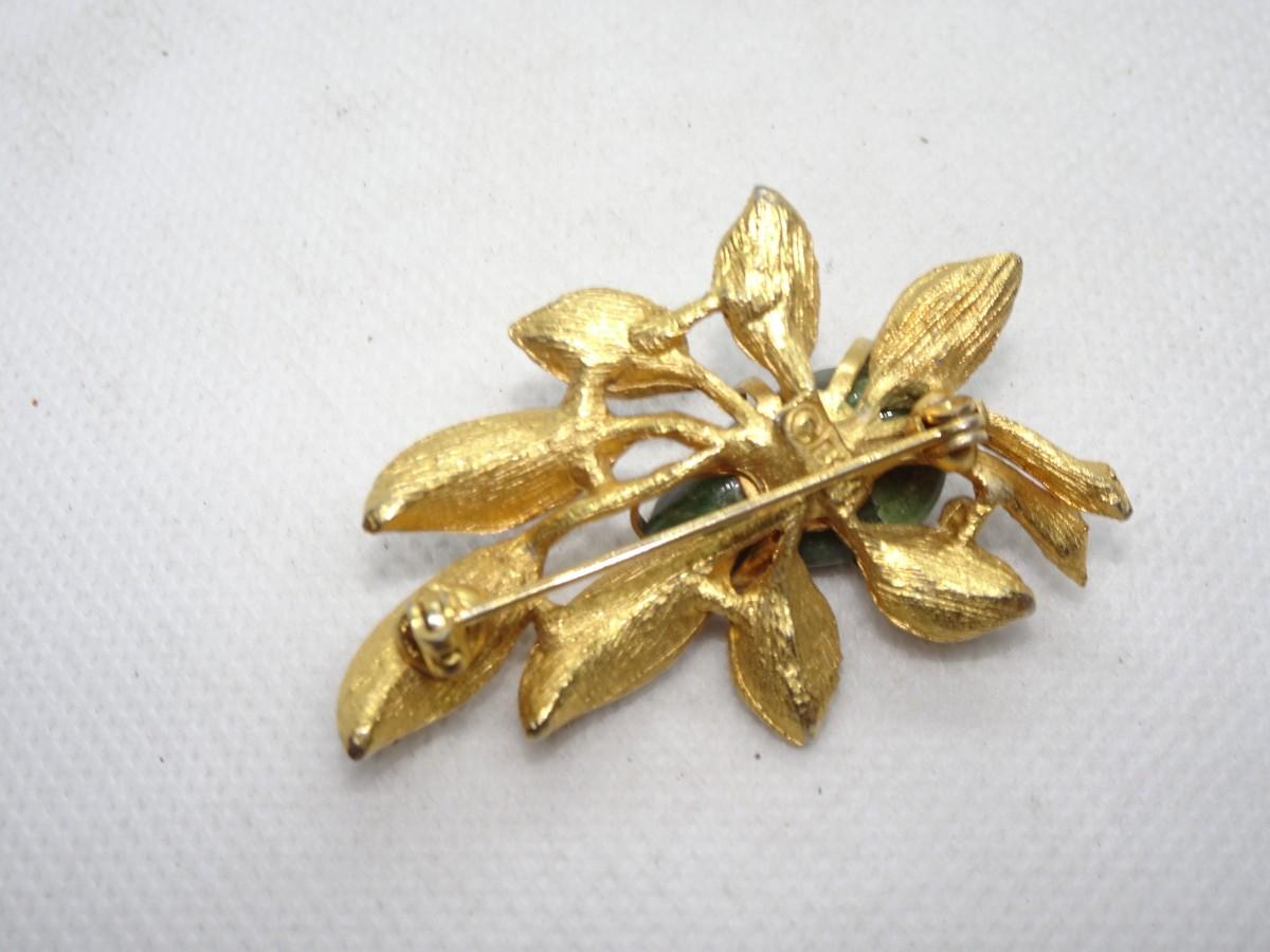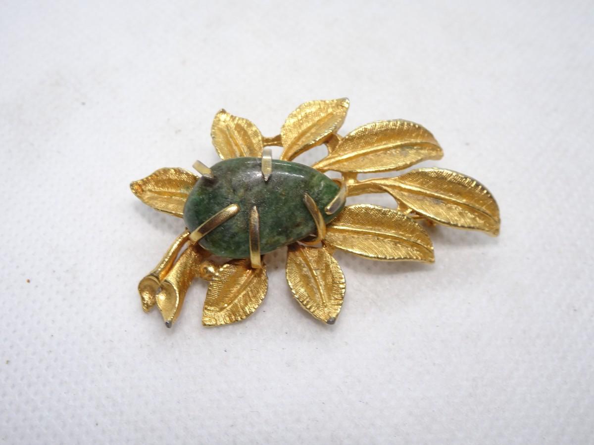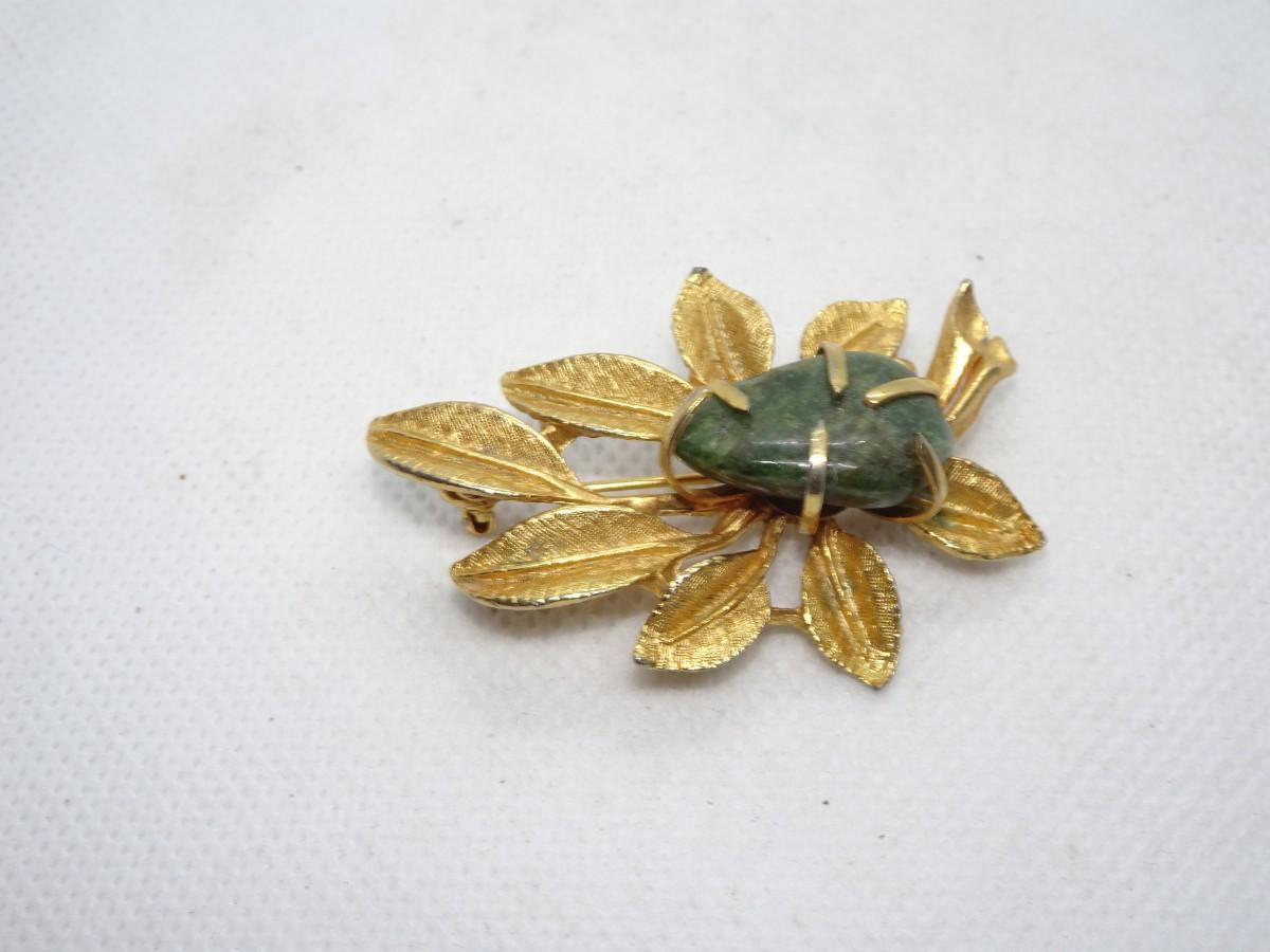 Gold Leaf maybe Jade Brooch