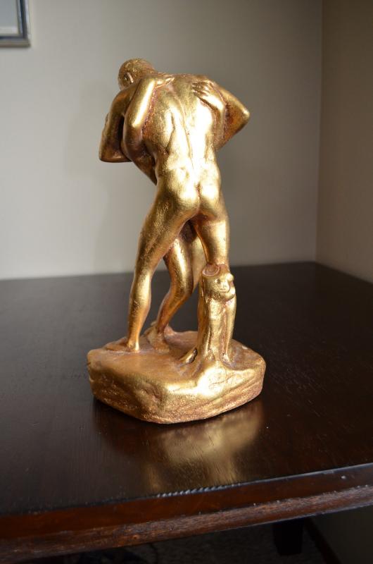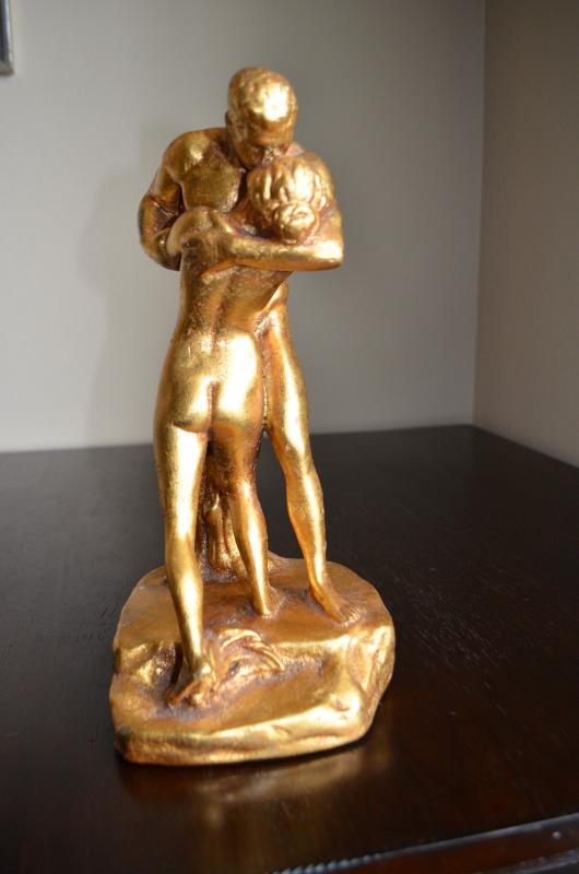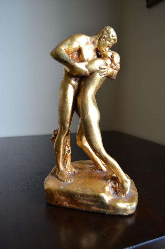 GOLD LEAF NUDE COUPLE CHALKWARE FIGURINE 12" TALL