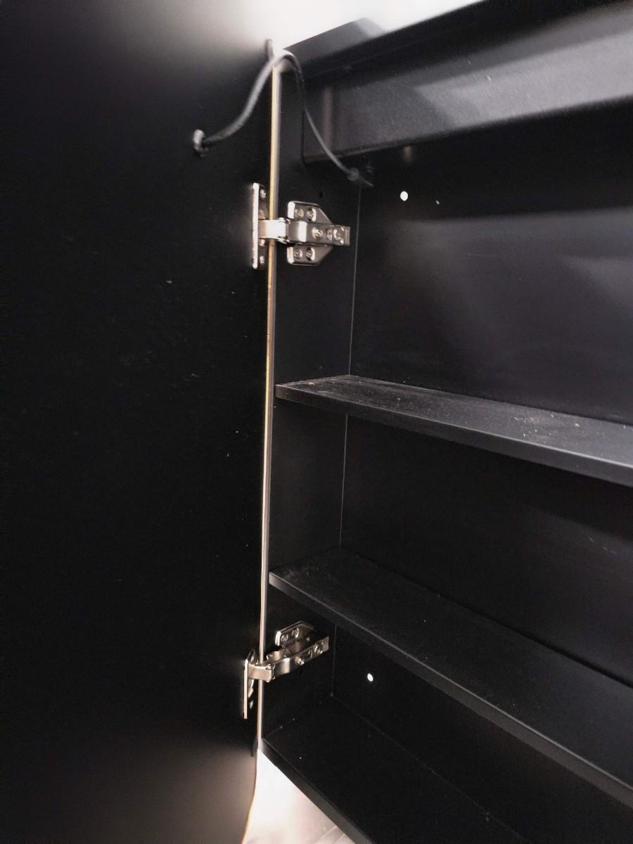 Gold medicine cabinet #2 with 3 color temperature dimmable light mirror. Can be recessed or surface mounted. It measures 24"W x 30"H. "Brand new in original packaging. **Advertising photo used to show better what it looks like without the protective clear plastic currently attached to the mirror. **There are 2 exact medicine cabinets available. You are only bidding on one here. Please see item 45KBMN to bid on the other one.