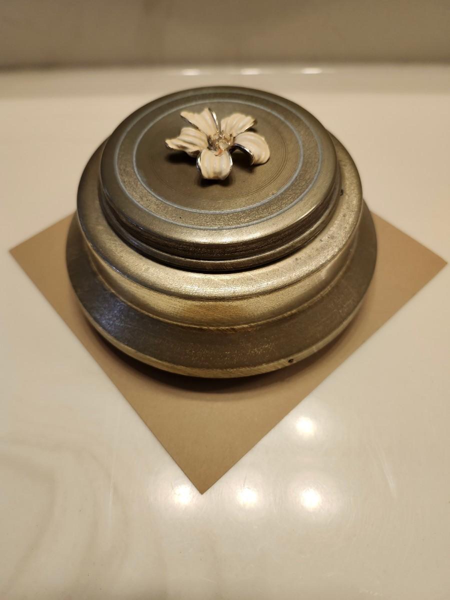 Enamel ivory and gold flower on the lid. Music Box works, exceptional tones.