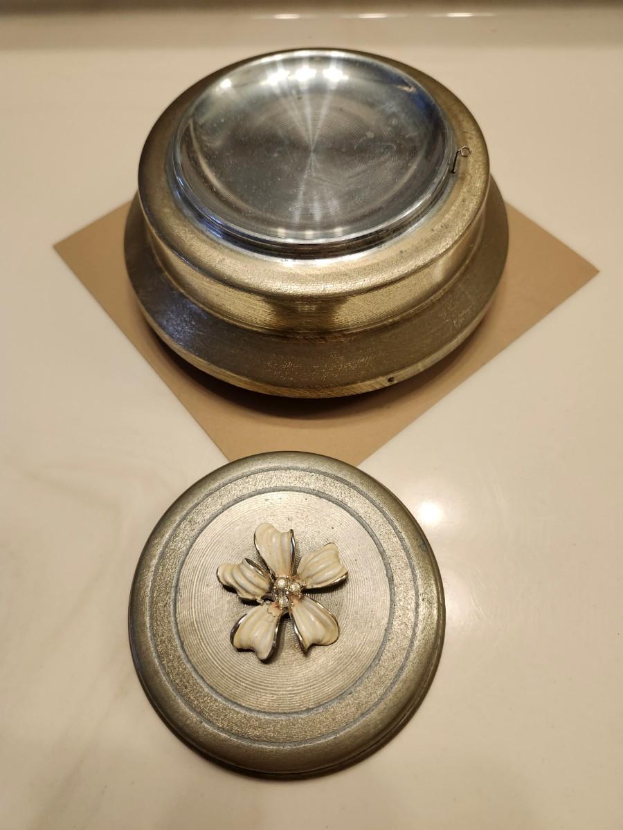 Unbranded vintage Silvertone Powder Puff – Trinket Box- Music Box (wind up)