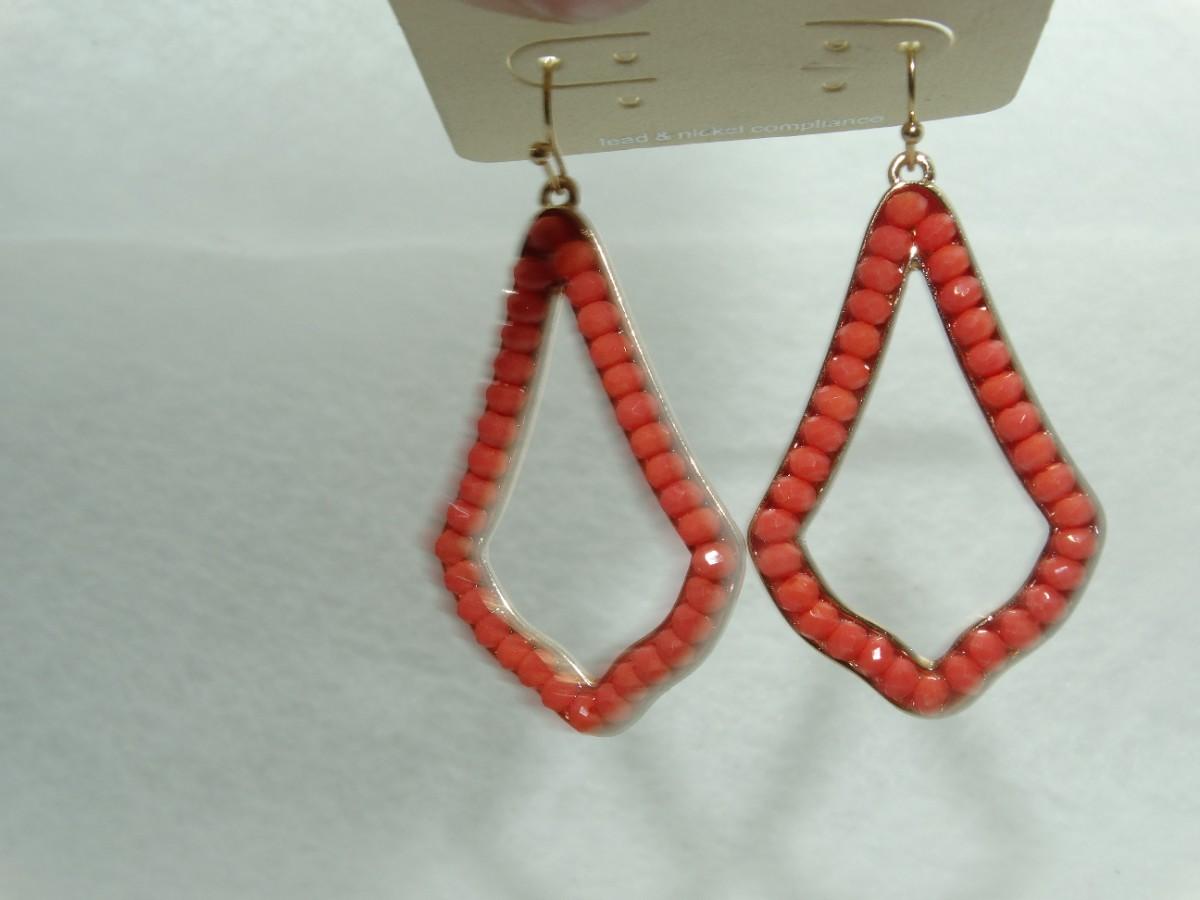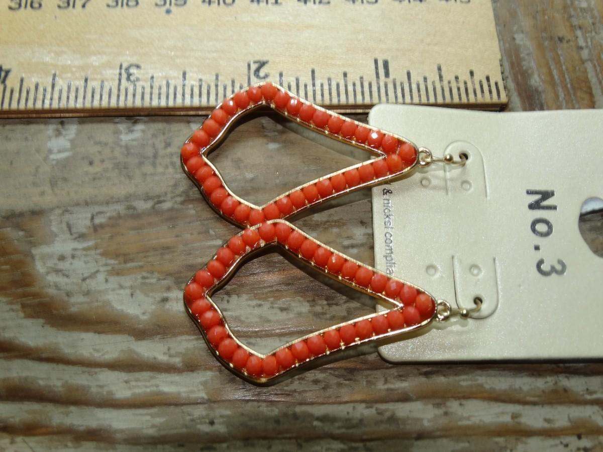 Gold Orange Beaded Dangle Earrings No. 3 - Kendra Style
