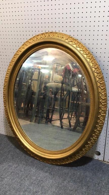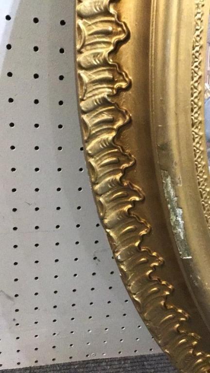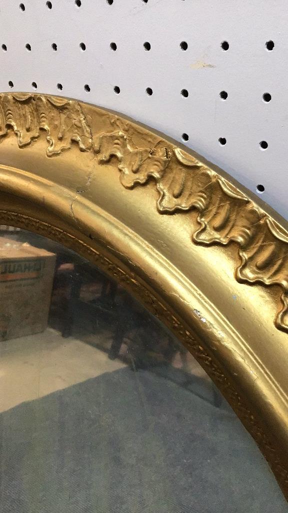 Imperfections to mirror glass, Gold tone gesso, some loss around edges, frame has been repaired, 37 x33