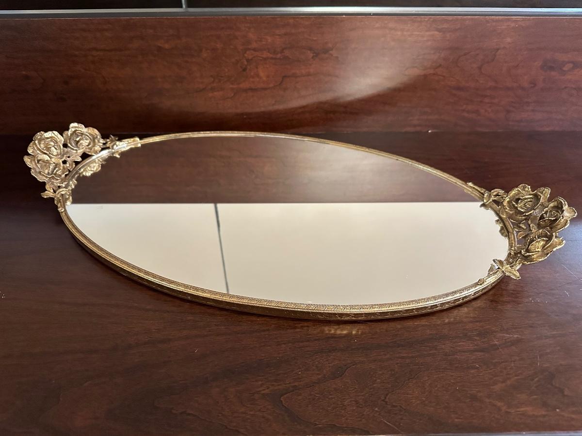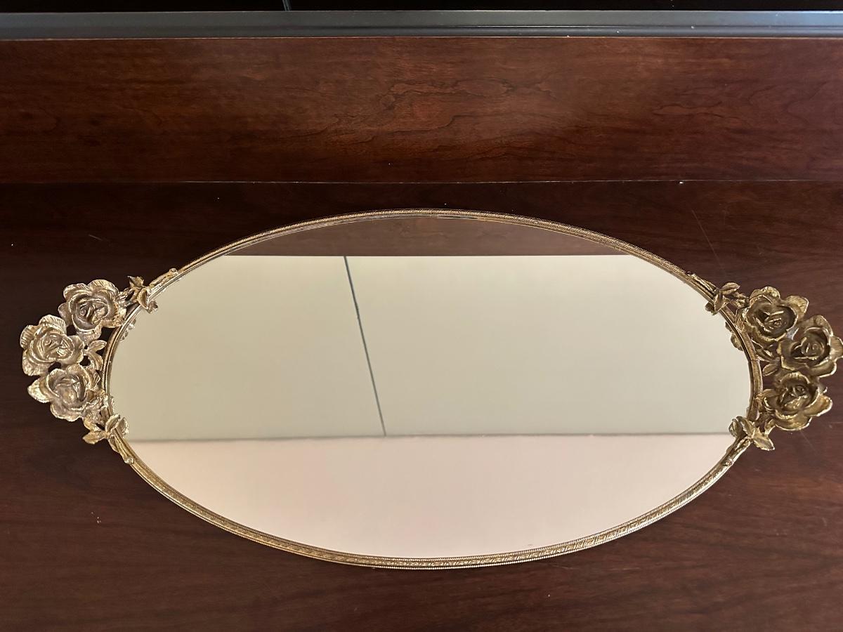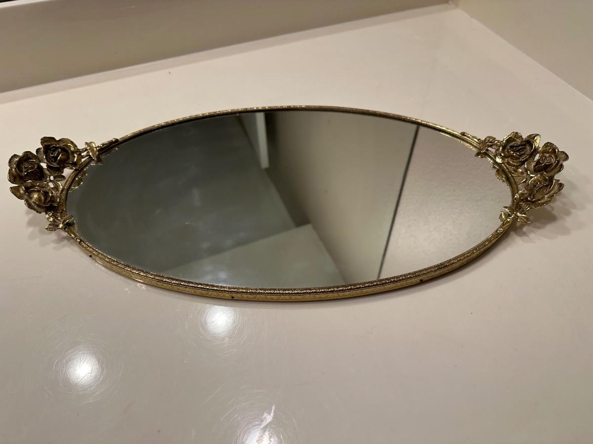 Gold Oval Vanity Mirror Tray
