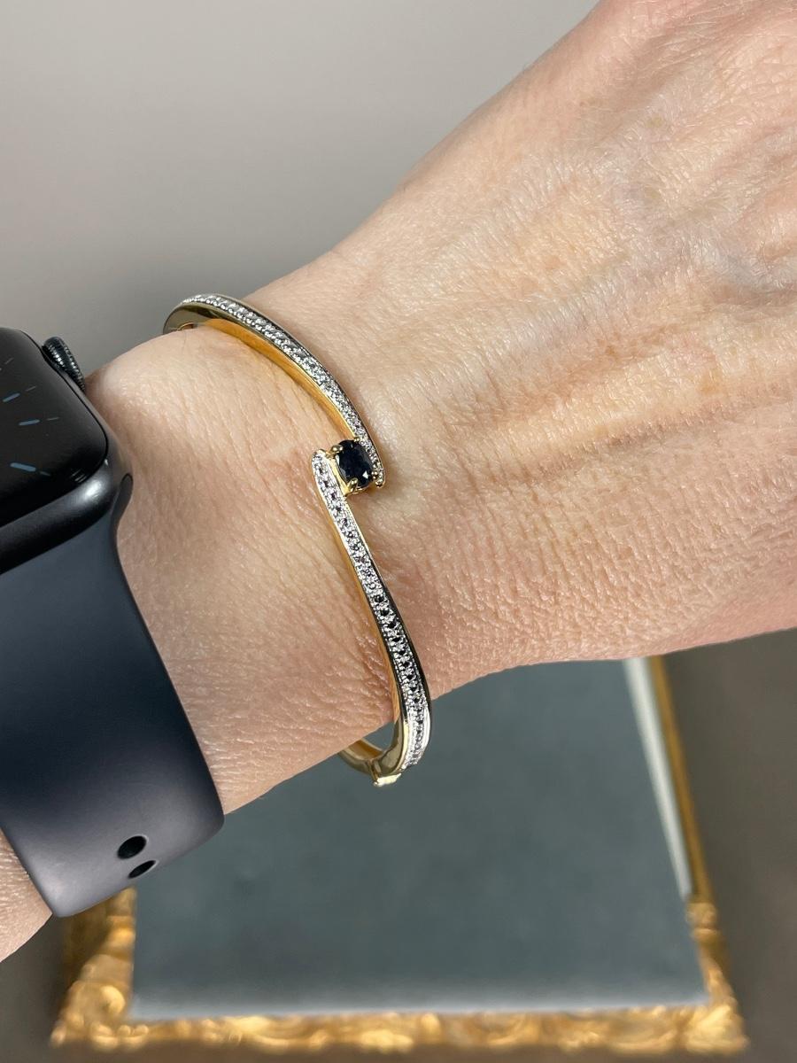 Nice, with lab created sapphire. Secure closure fits average to large wrist