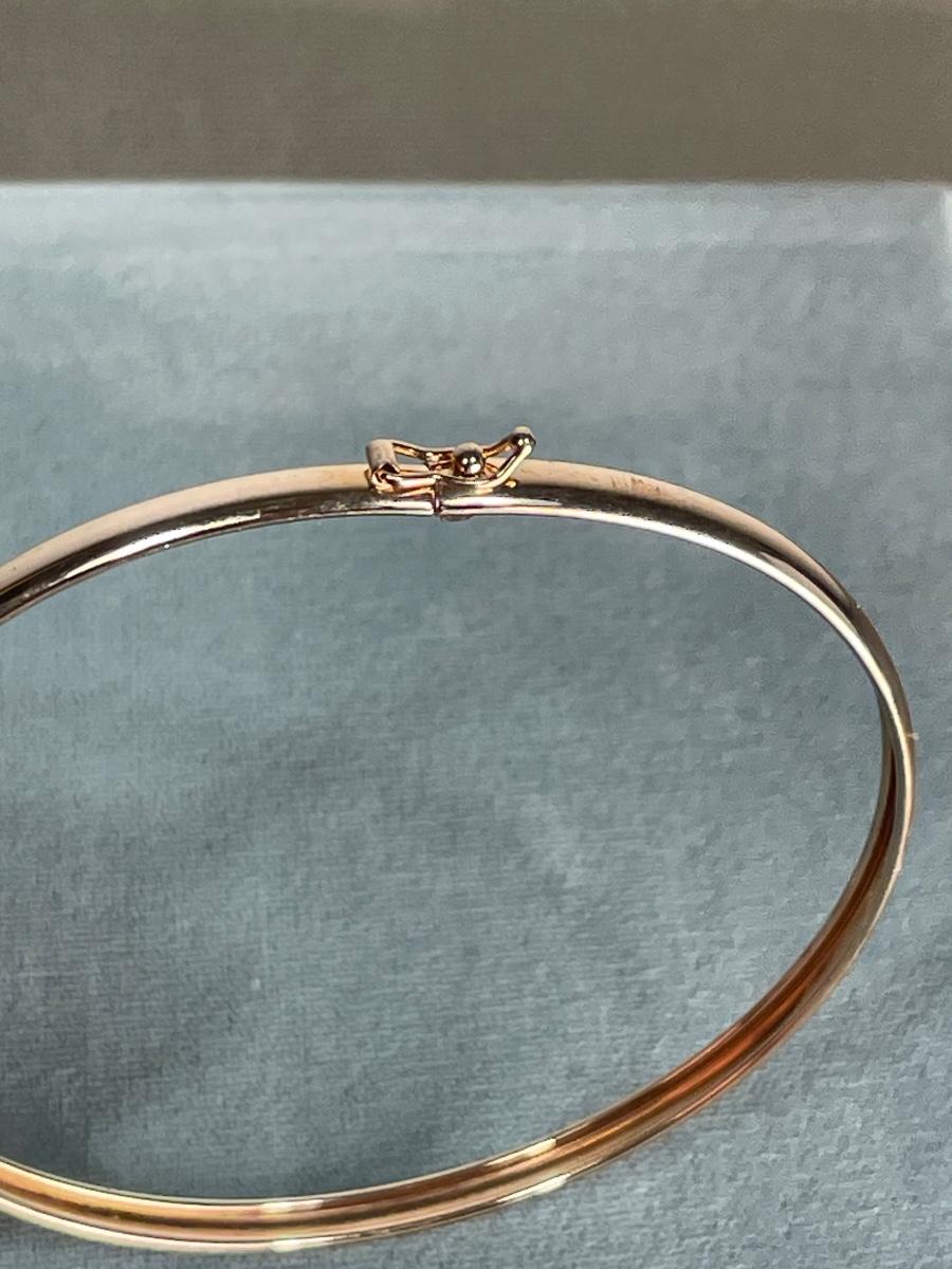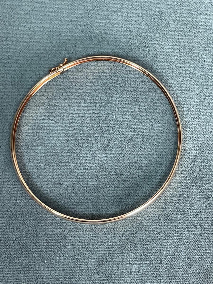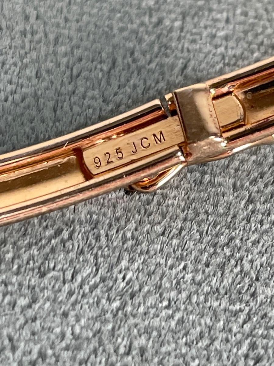 Warm gold color not quite rose gold color. Secure clasp. 2 5/8” diameter marked 925
