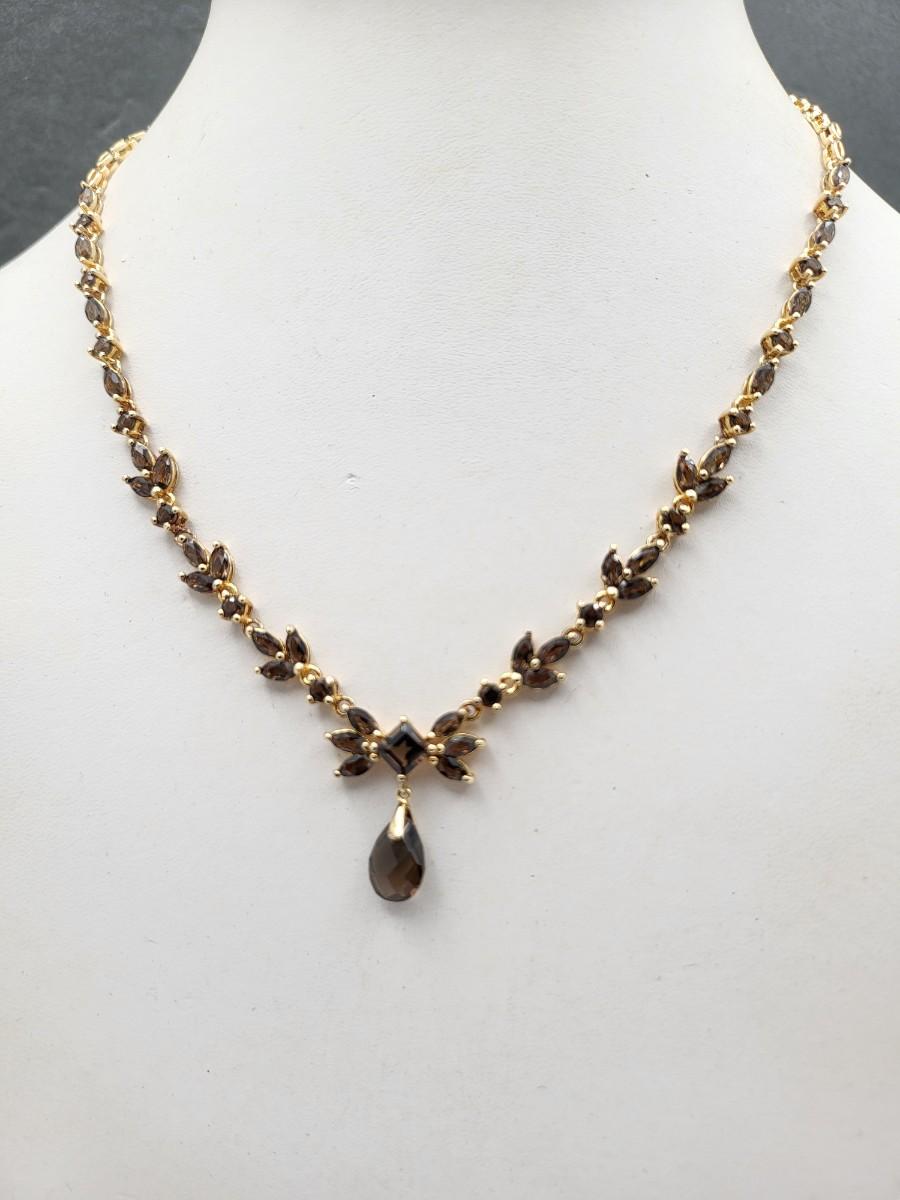 17" gold over 925 sterling silver chain, smoky Topaz marquise cut gemstones, and pear shaped center pendant dangle. Stamped DL. Total weight is 14.3 grams.