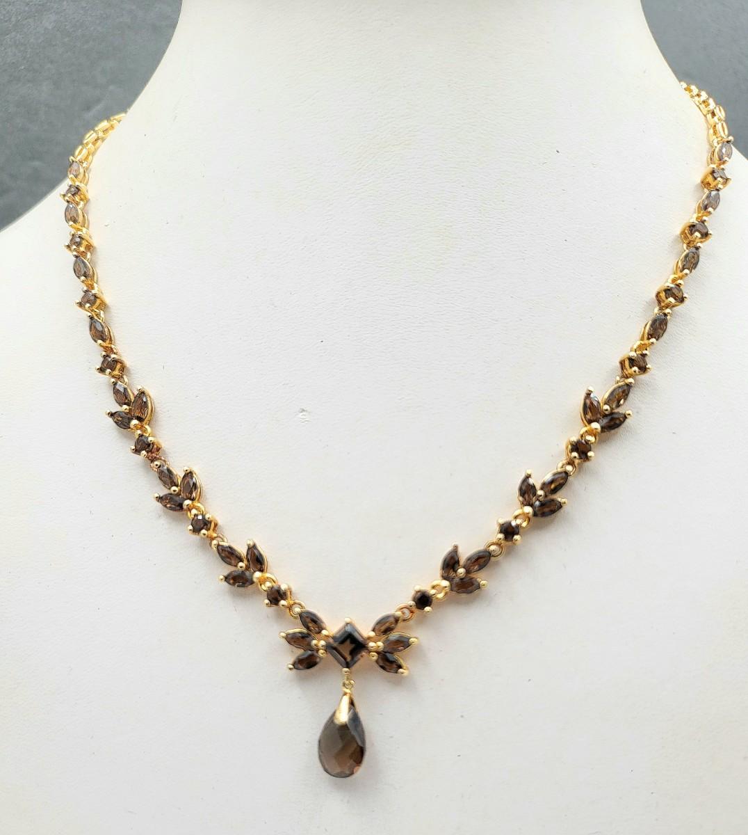Gold Overlay 925 Smoky Topaz Necklace 14.3gr