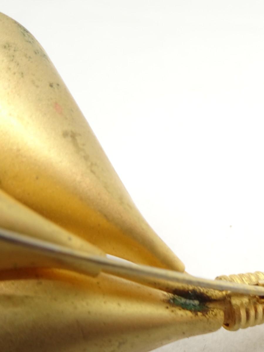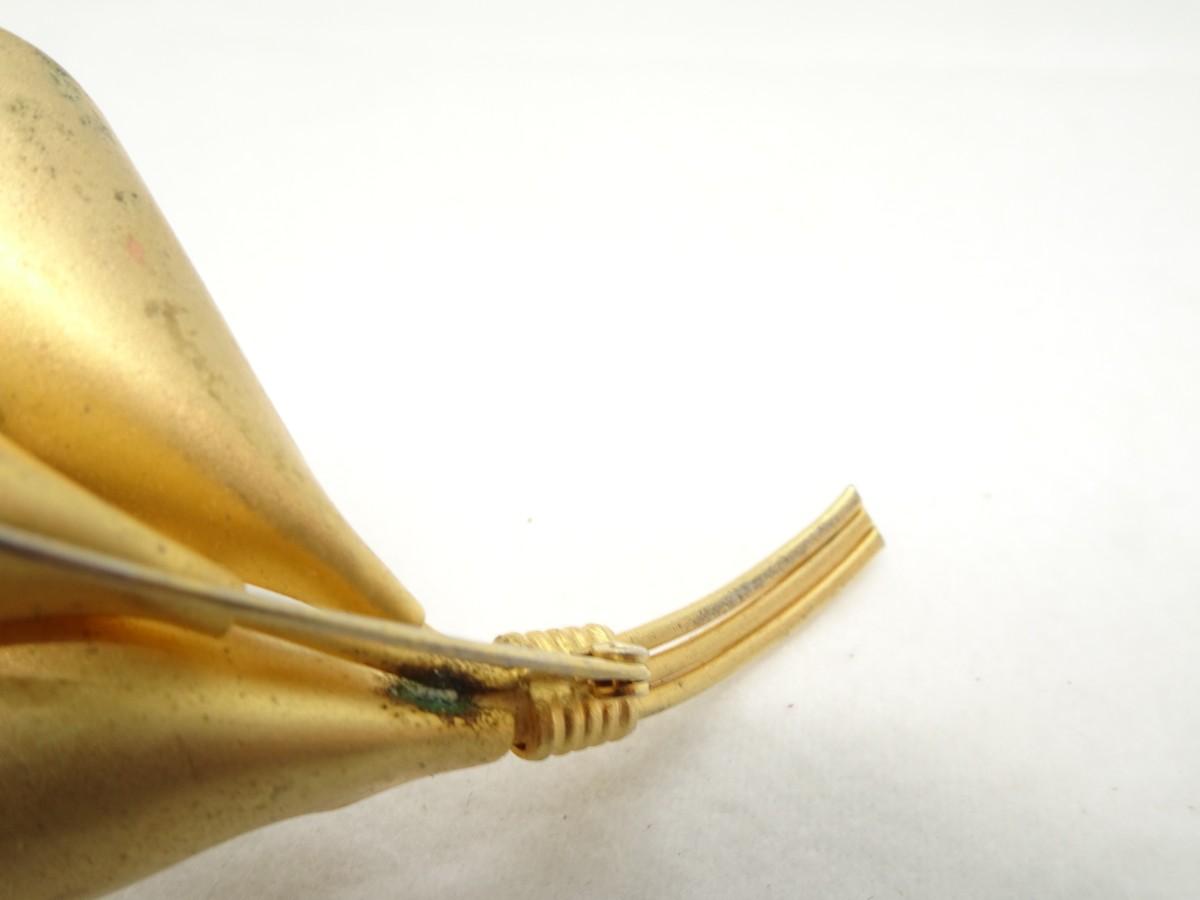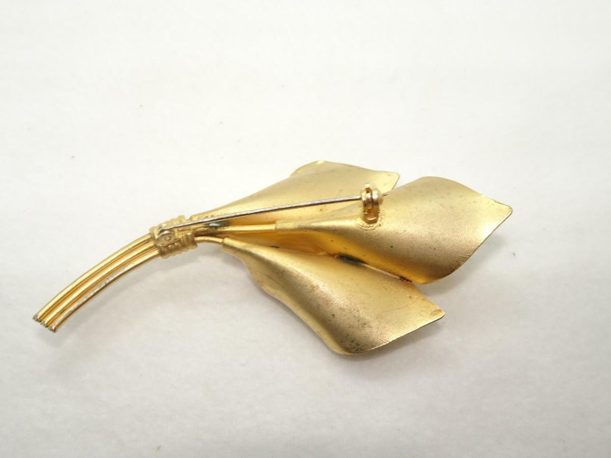 Gold Overlay, Triple Lily Pin, Jasper & Pearl - Mid Century