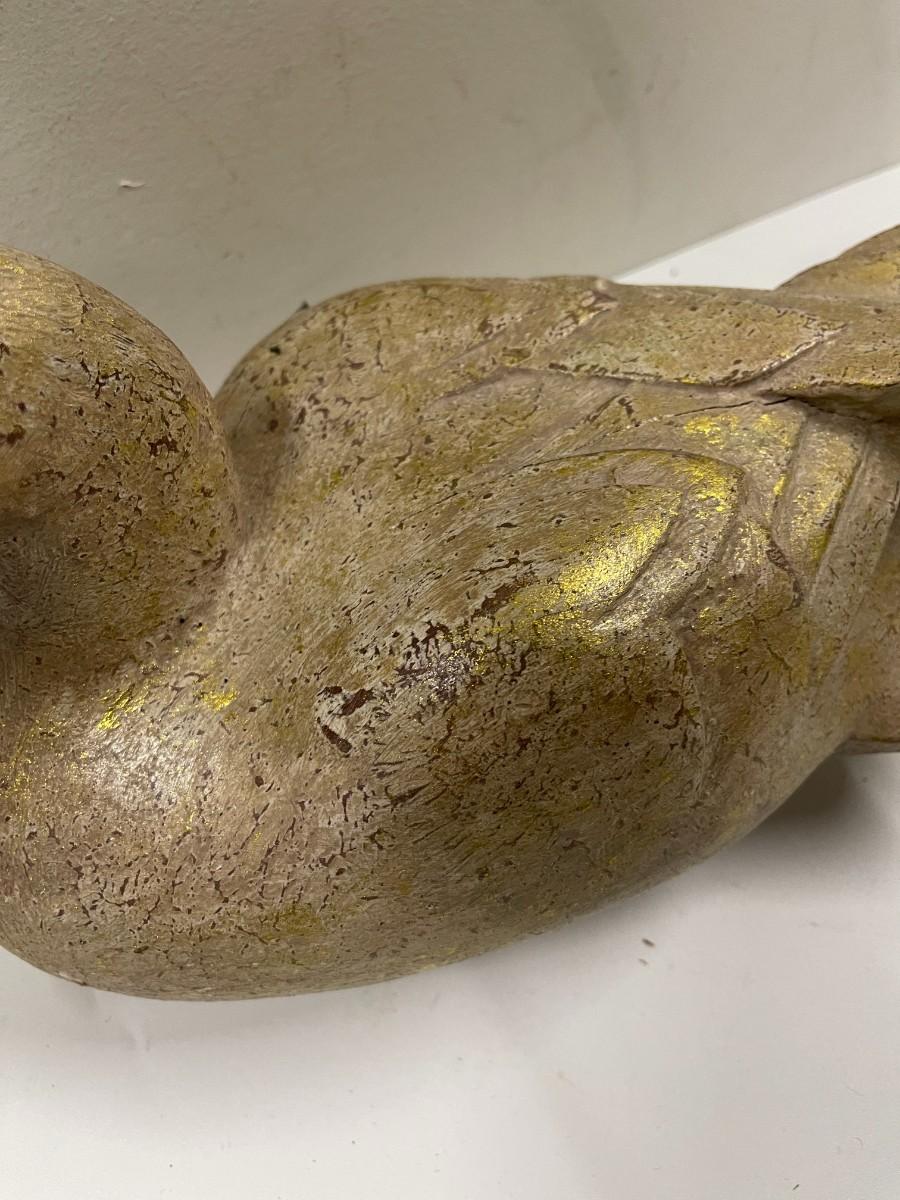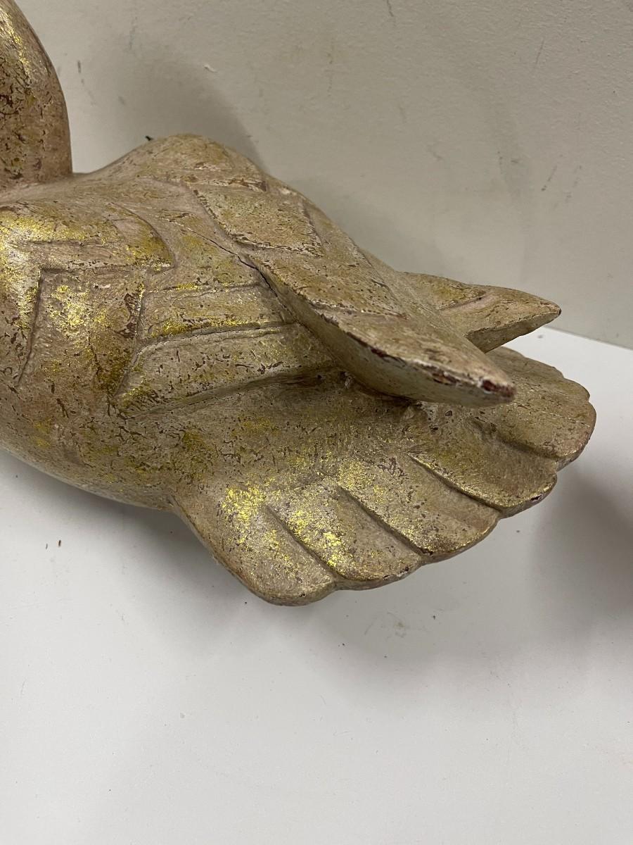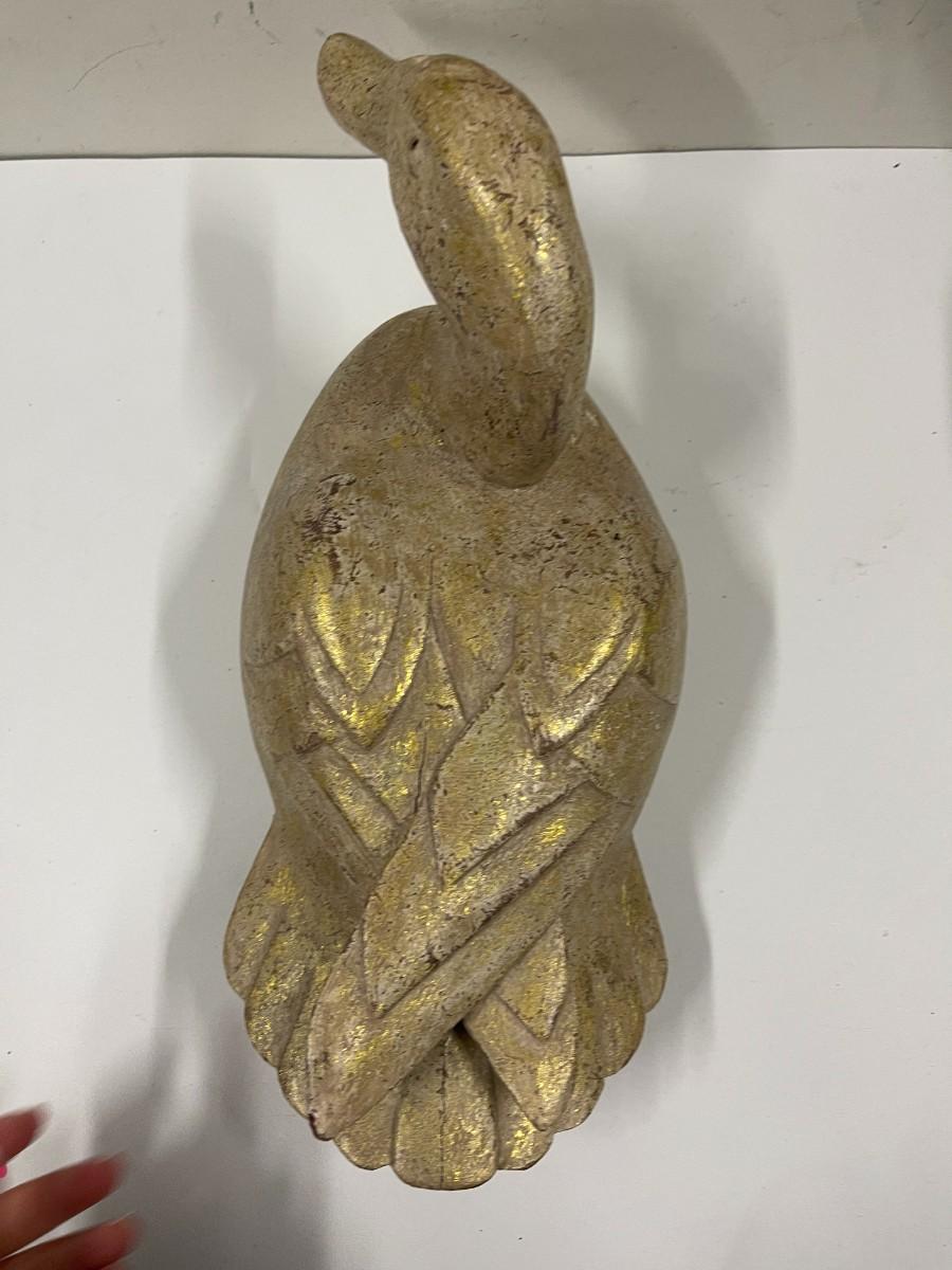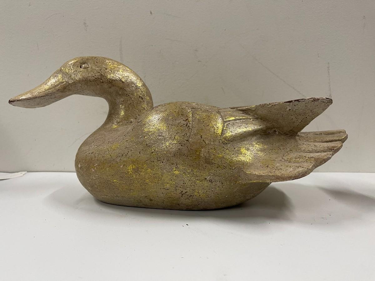 Gold painted duck decoy, made of some light weight material. Approx 7" x 14"
