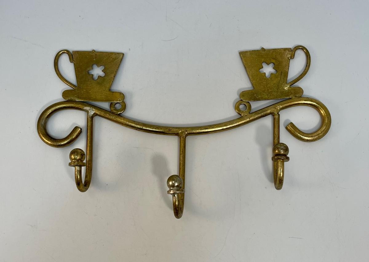 Gold Painted Metal Tea Cup Key Hook Wall Hanger Decor