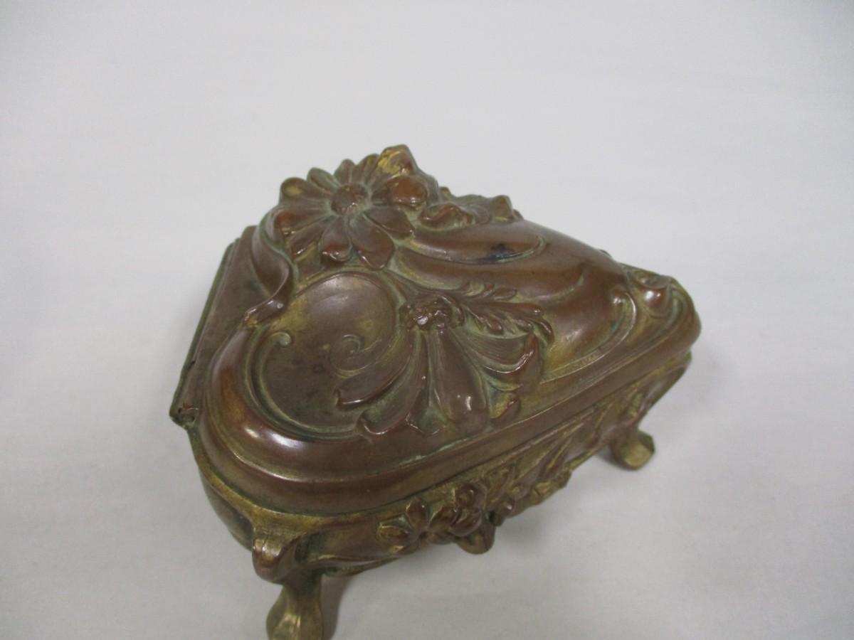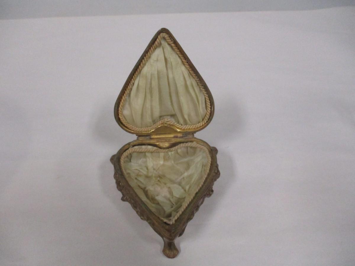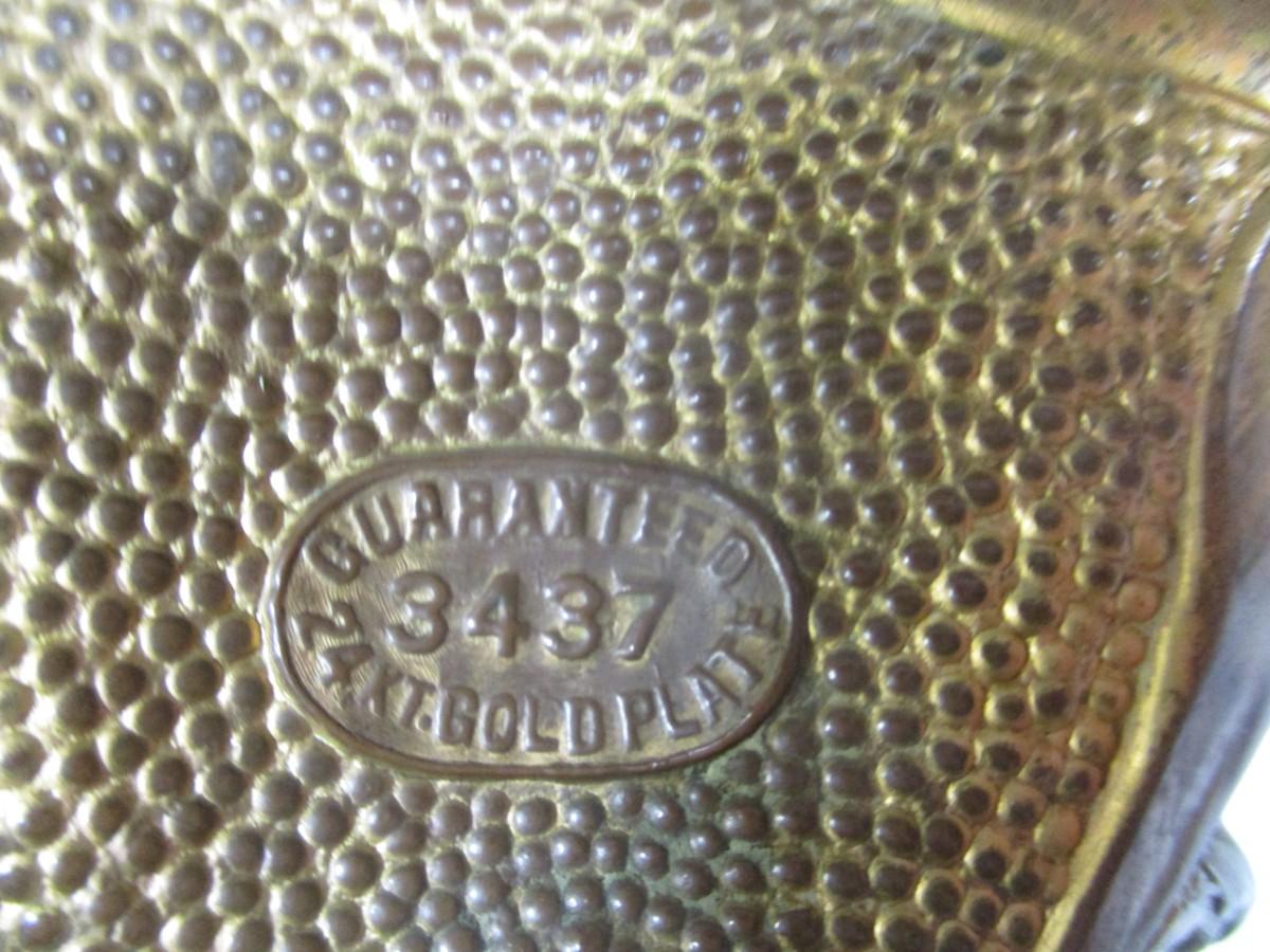 Gold Plate Silk Lined Jewelry Box #3437 Guaranteed 24Kt Tri Footed Floral Design