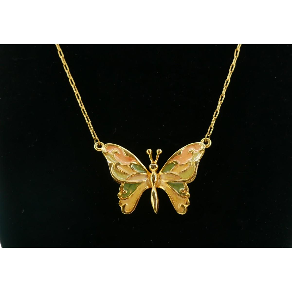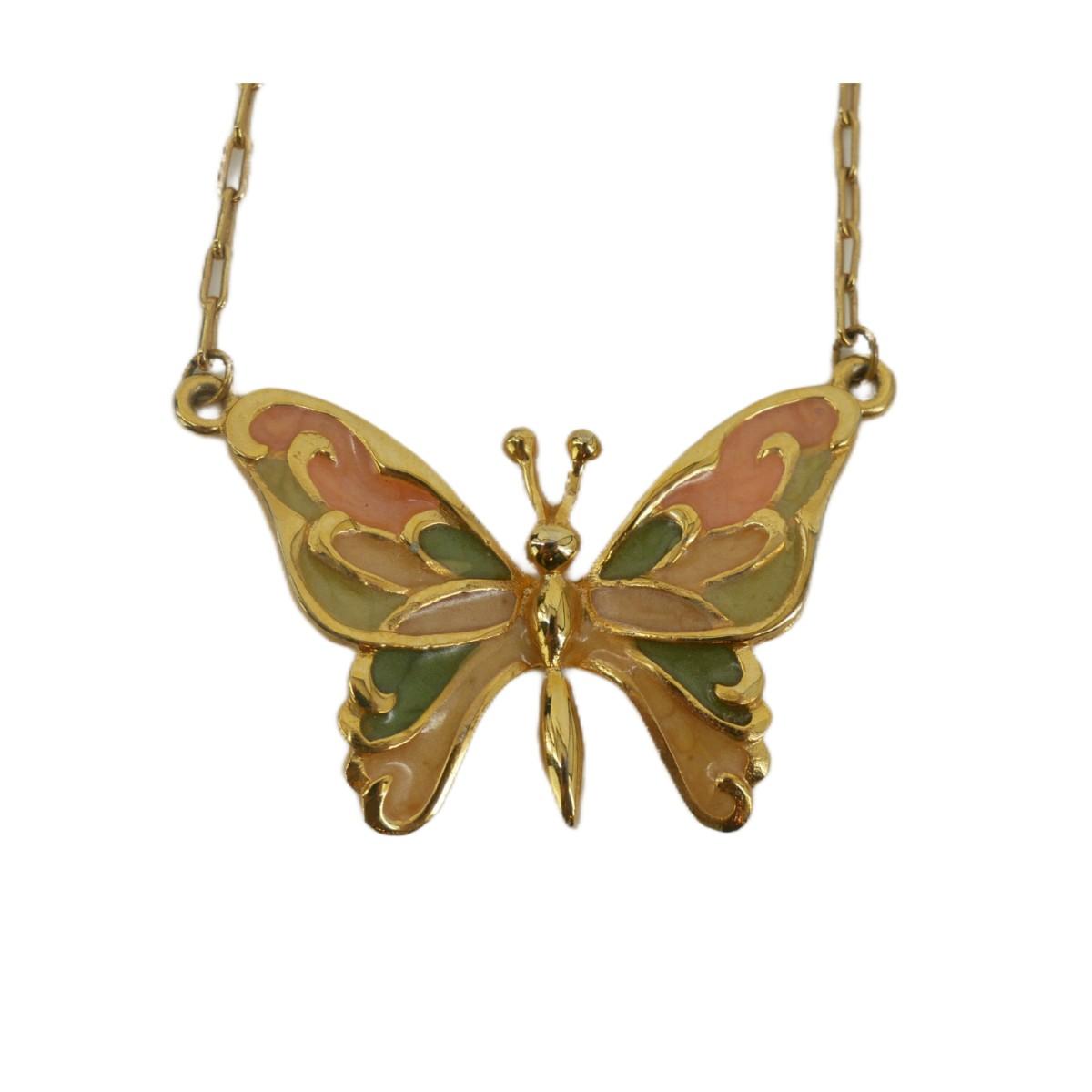 Super cute gold plated butterfly necklace, measures 14" long and pendant is 1.5" x 1", weighs 0.4 oz.