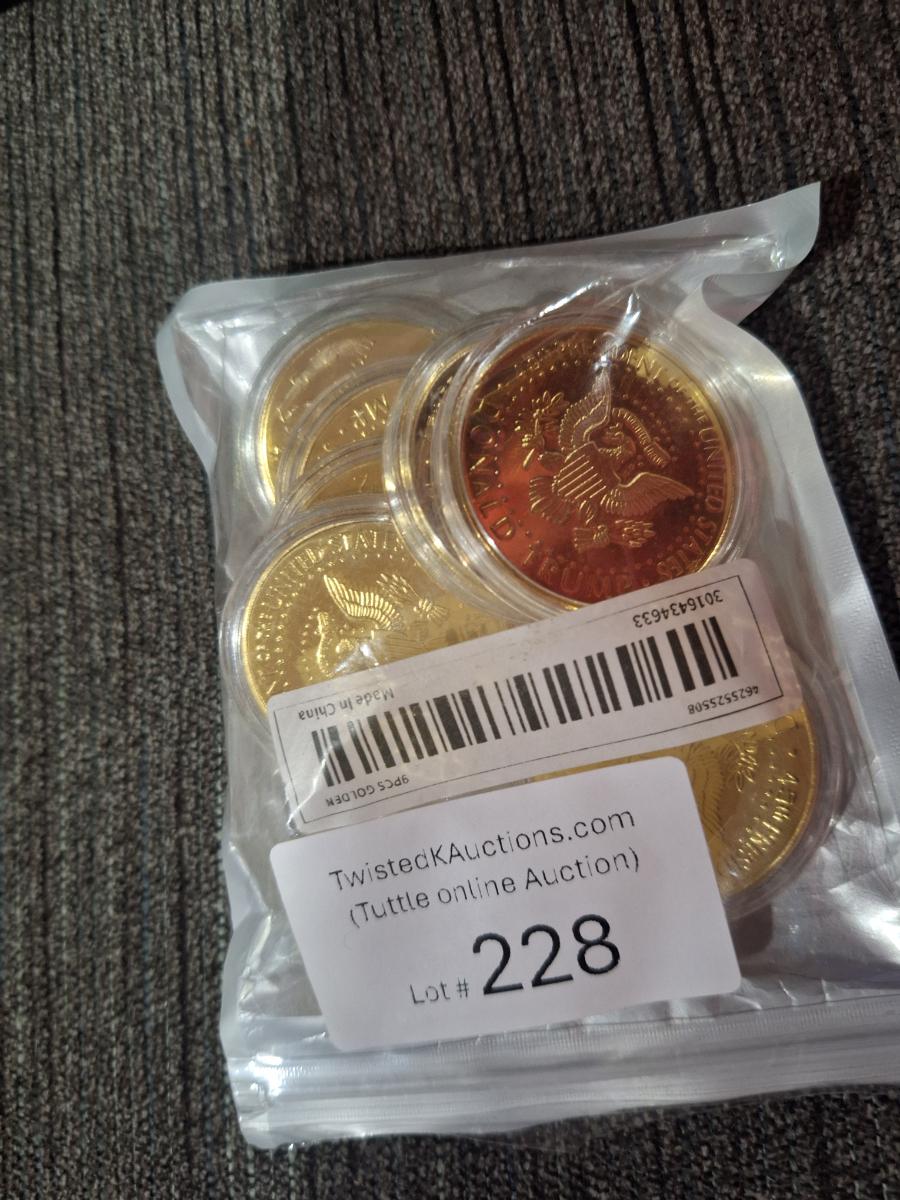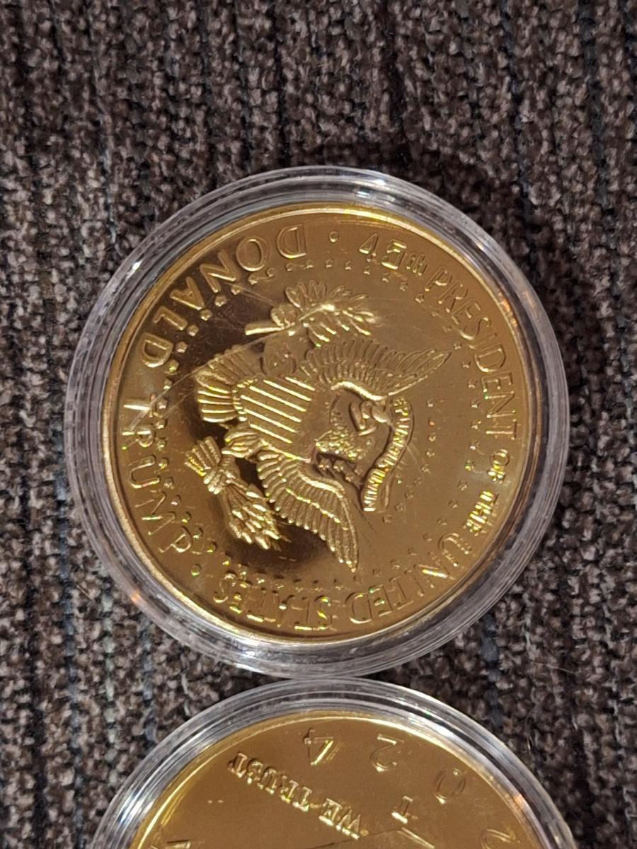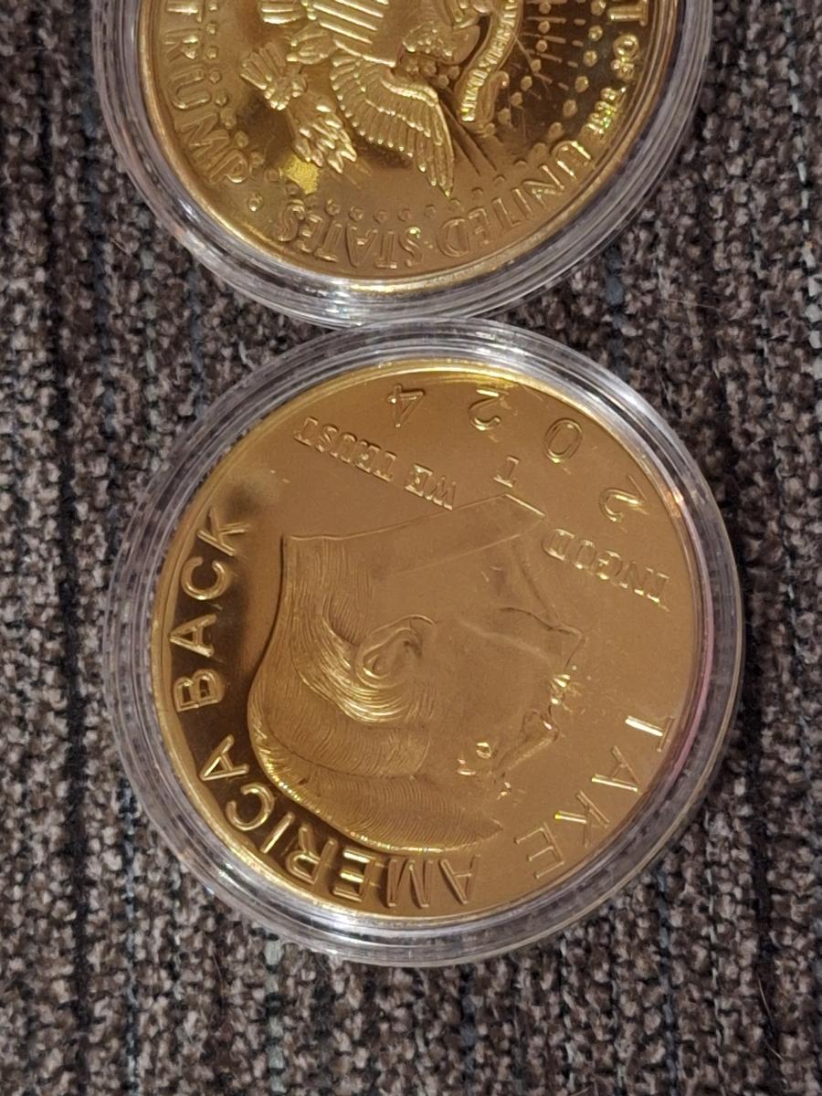 gold plated Donald Trump 2024 commemorative memorabilia coins in cases