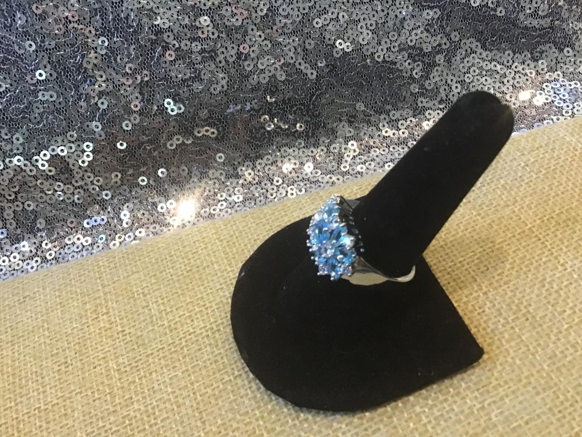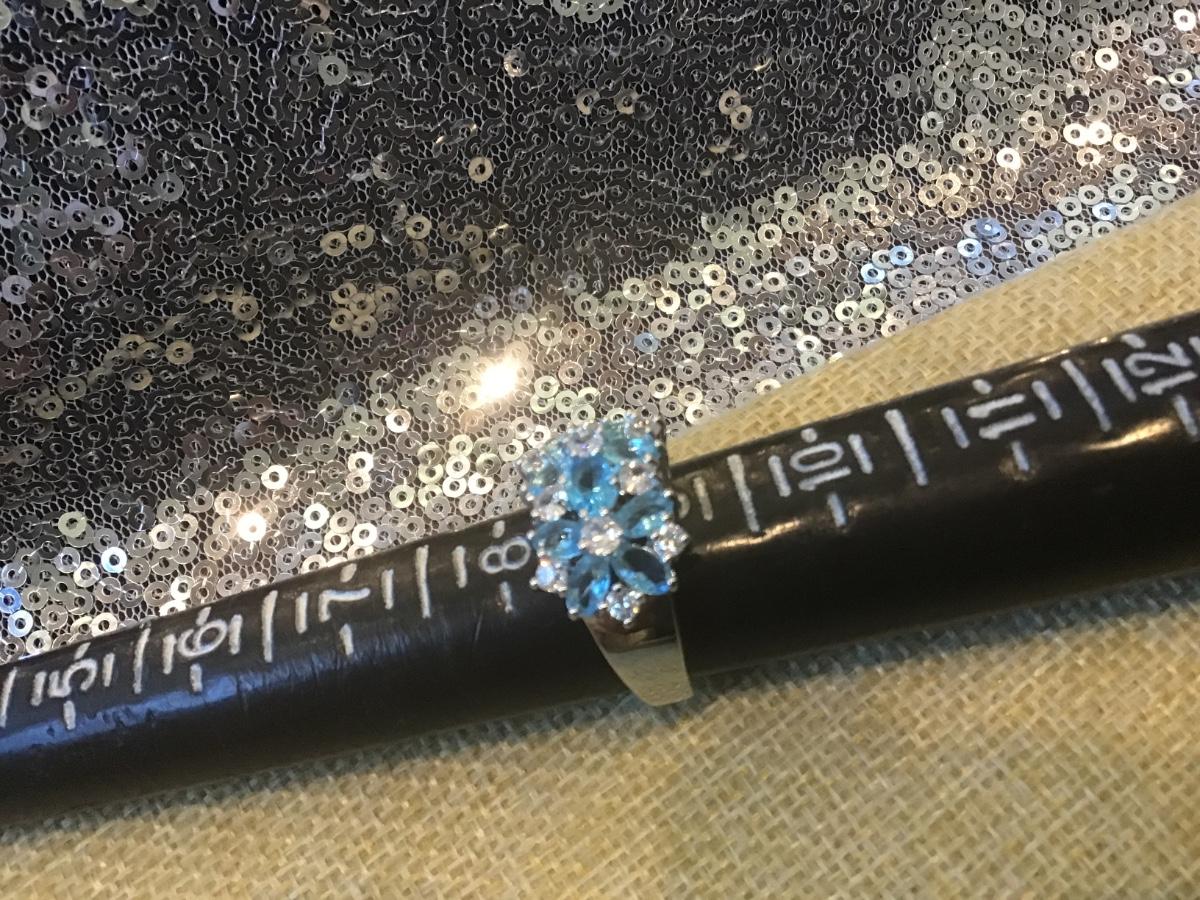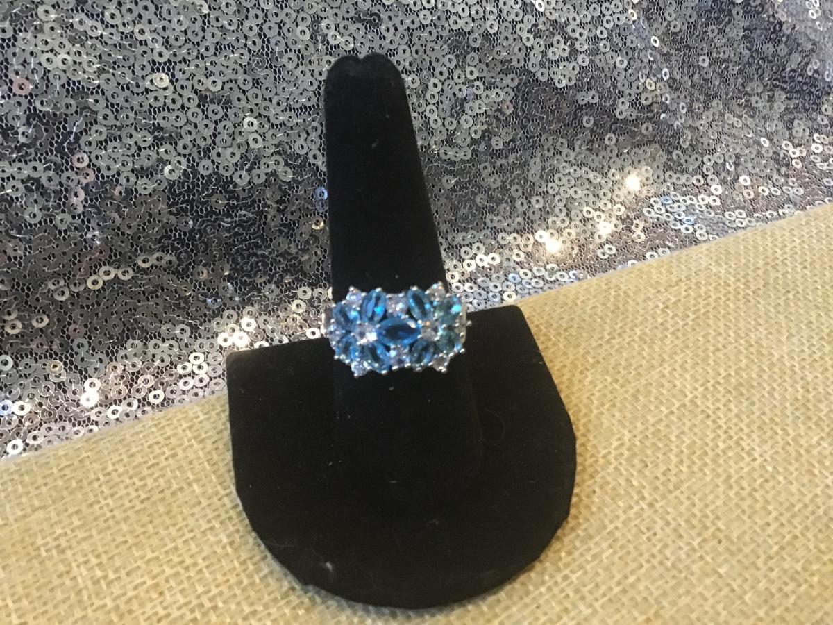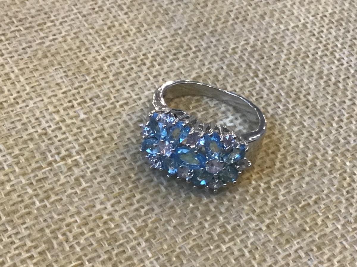 Gold Plated Fashion Ring Blue Crystal Flower 🌸