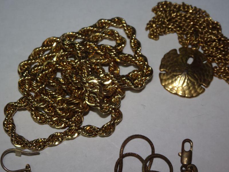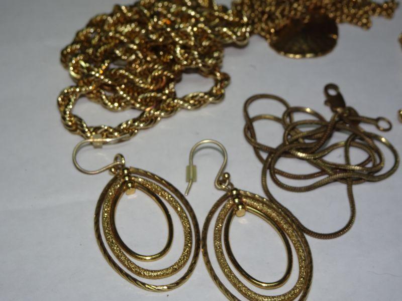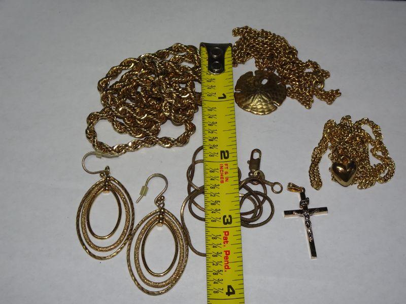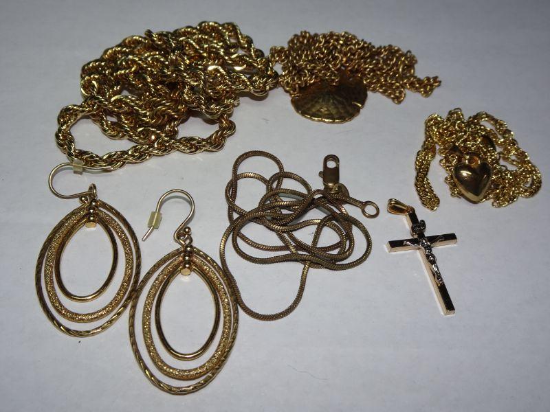 Gold Plated Jewelry Lot, Crucifix, Earrings, Chains