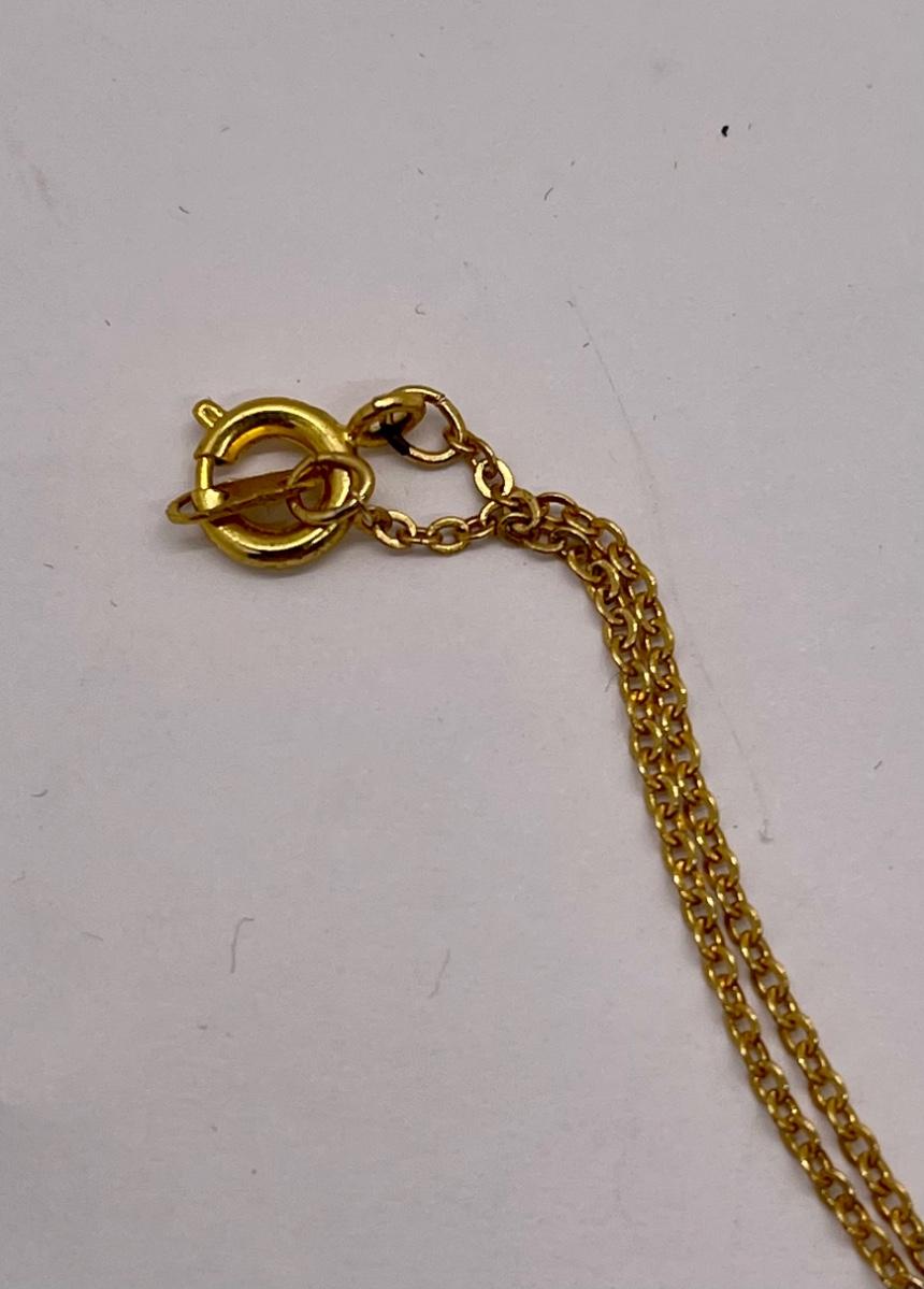 In good used condition, chain is approx. 18" and pendant has 30 CZ Stones.