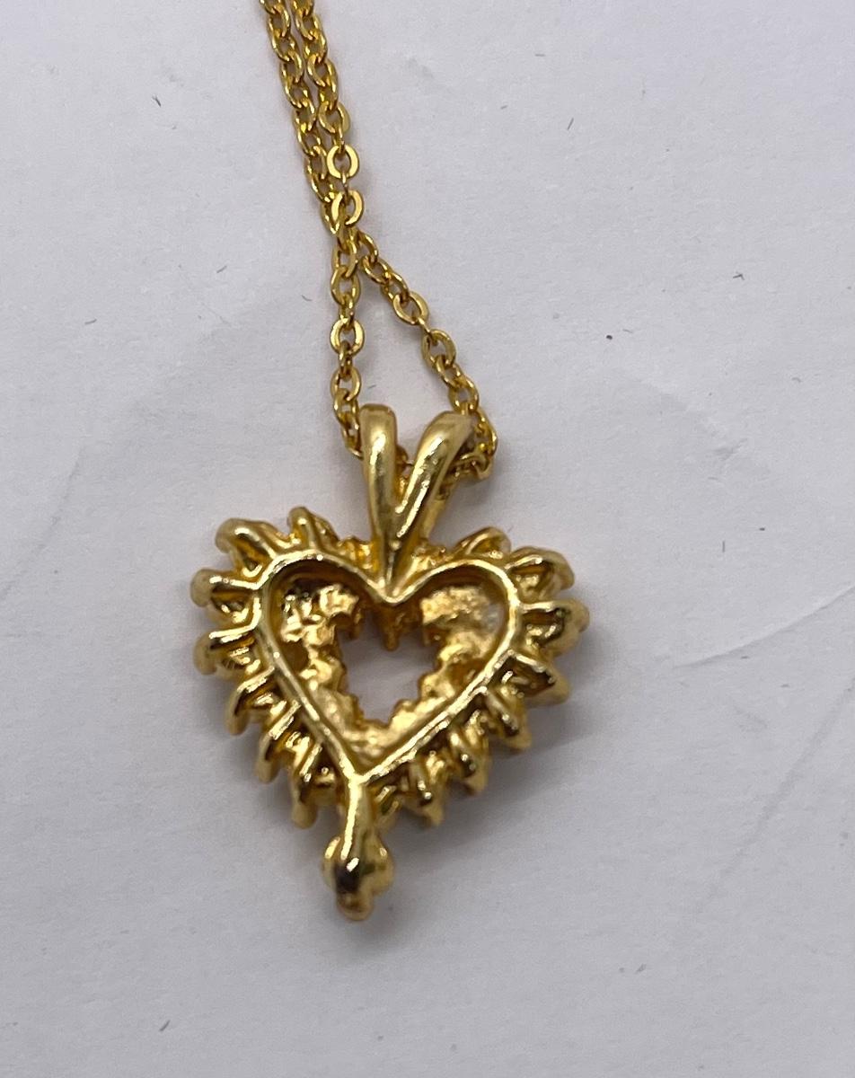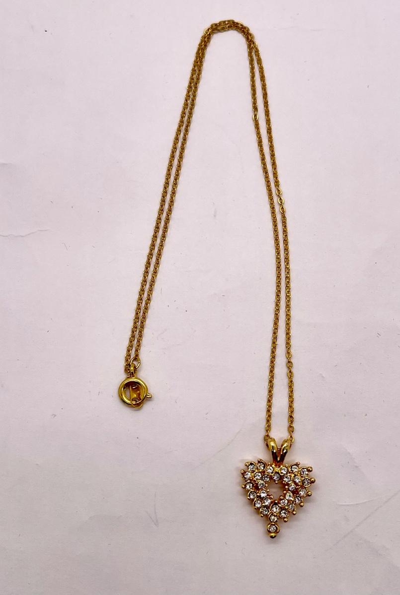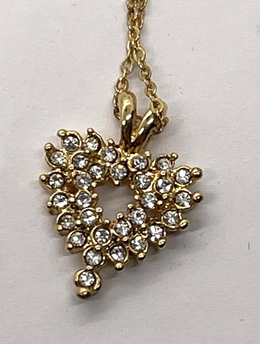 Gold Plate Heart Shaped Pendant Necklace CZ Rhinestone