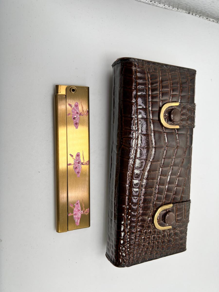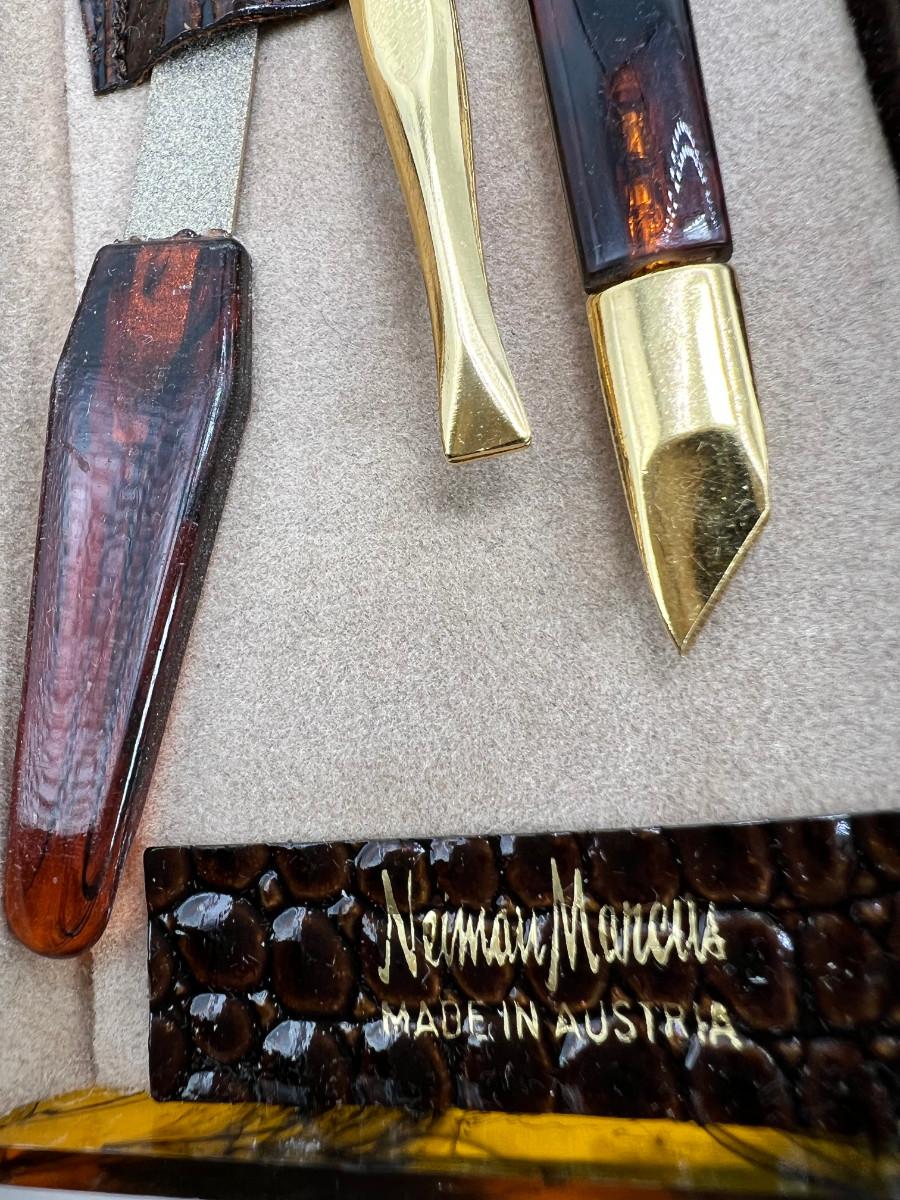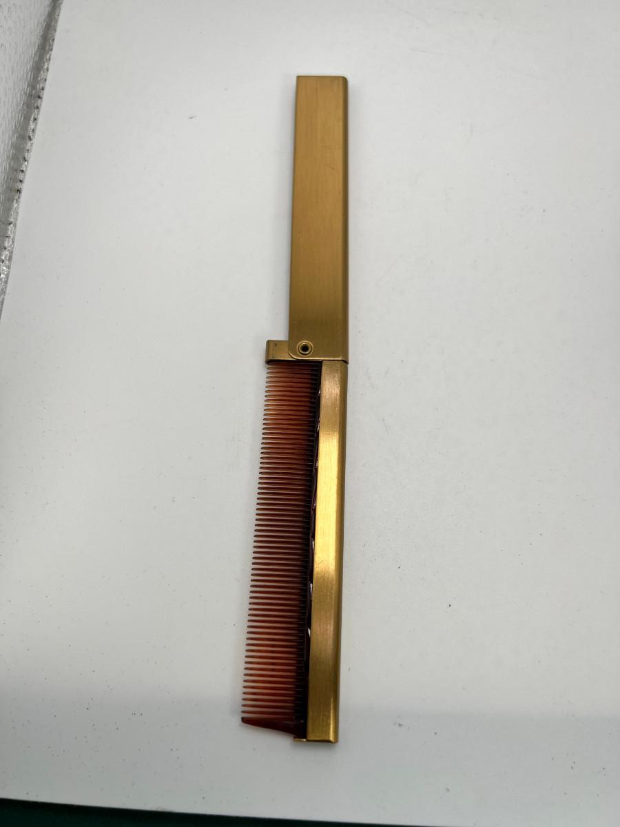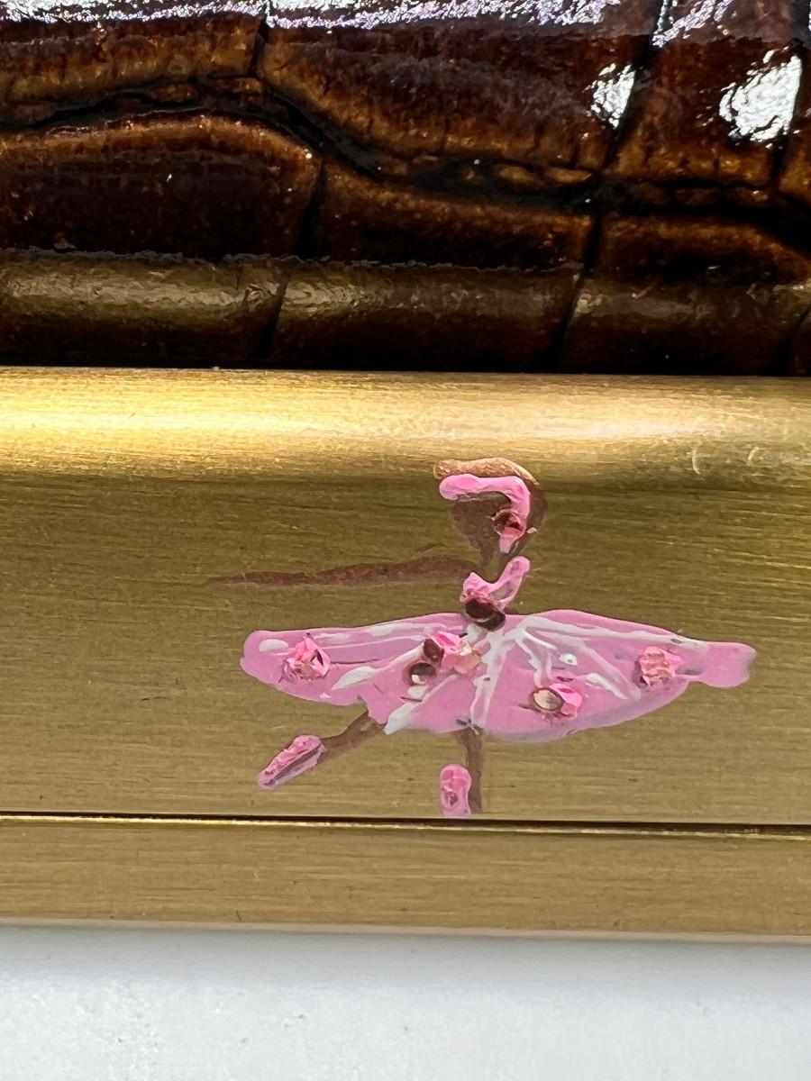 Gold Plated 5" Faux Crocodile leather Neiman Marcus Vintage new vanity set and Vintage ballerina folding comb