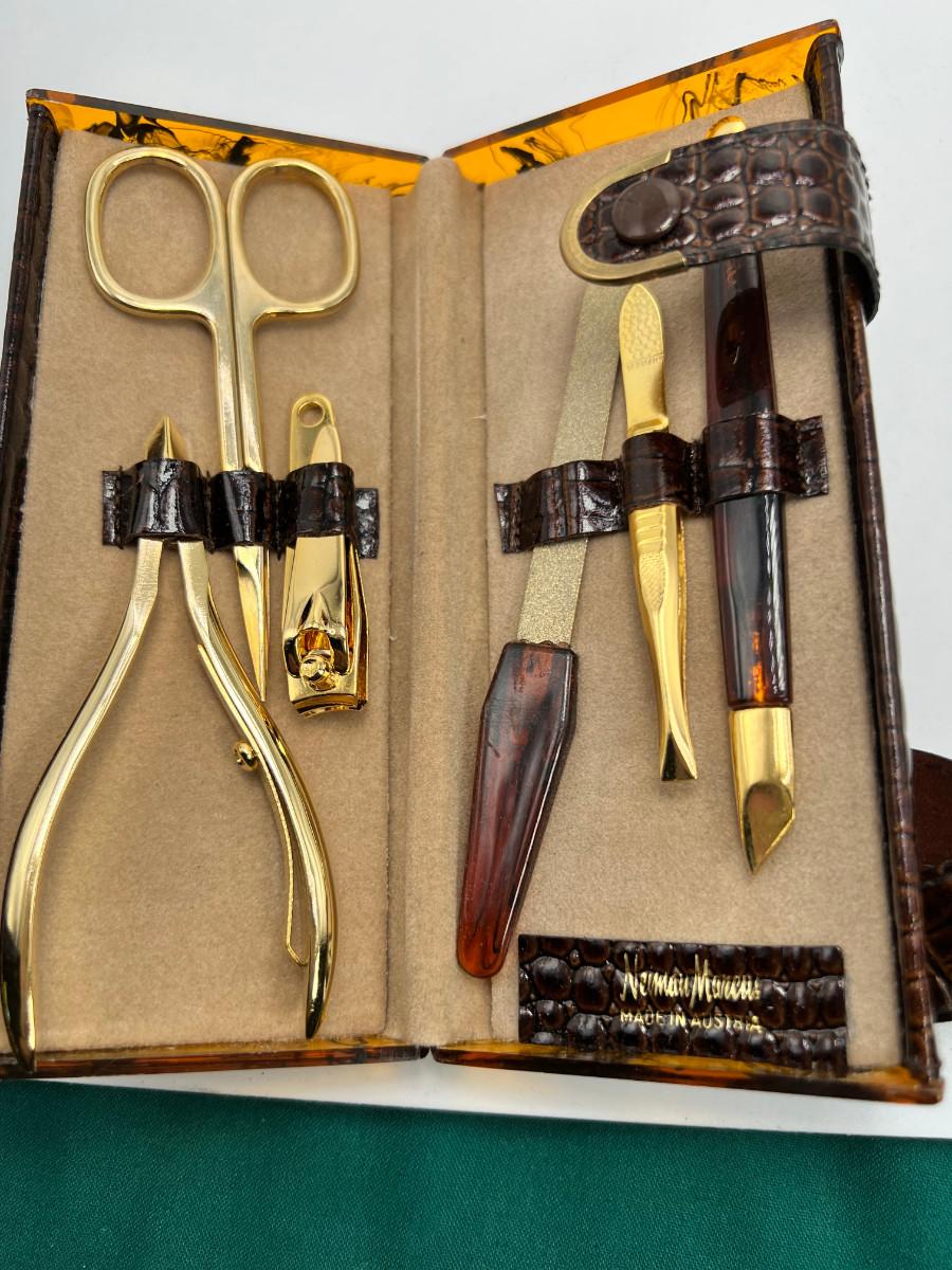 Gold Plated Neiman Marcus Vintage new vanity set and Vintage comb