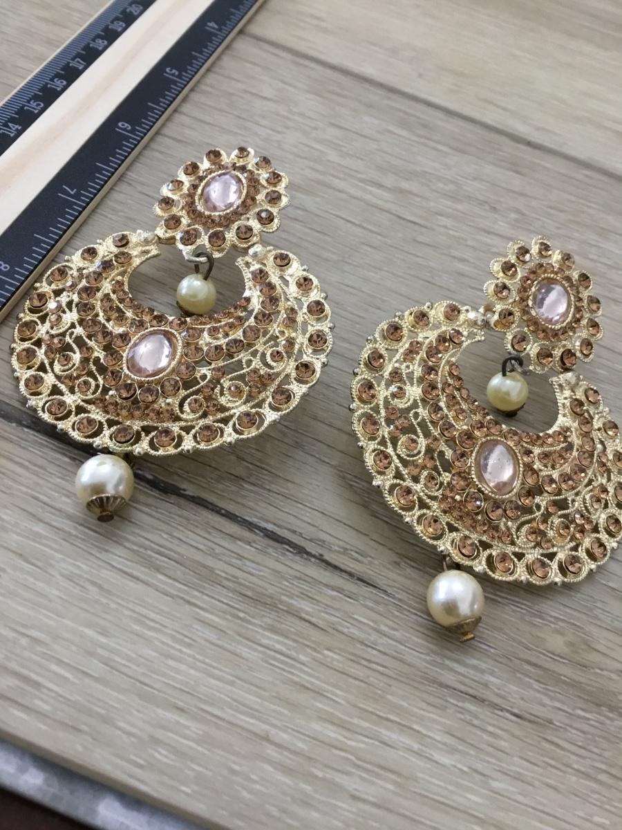 Gold Polki Earrings/Polki Chandbali/Indian Earrings/pearl Earrings/Pakistani Earrings/Punjabi Earrings/Long chandelier/Wedding/Bridal