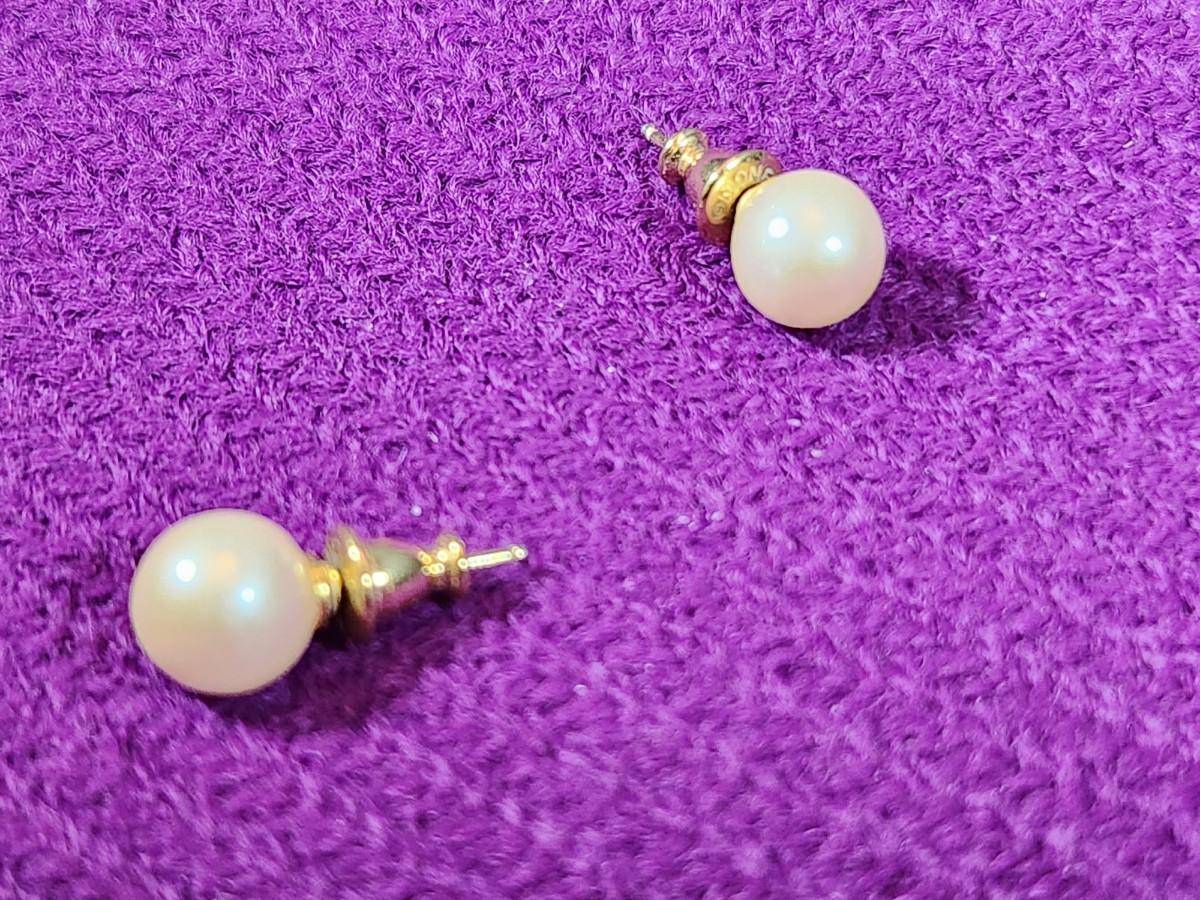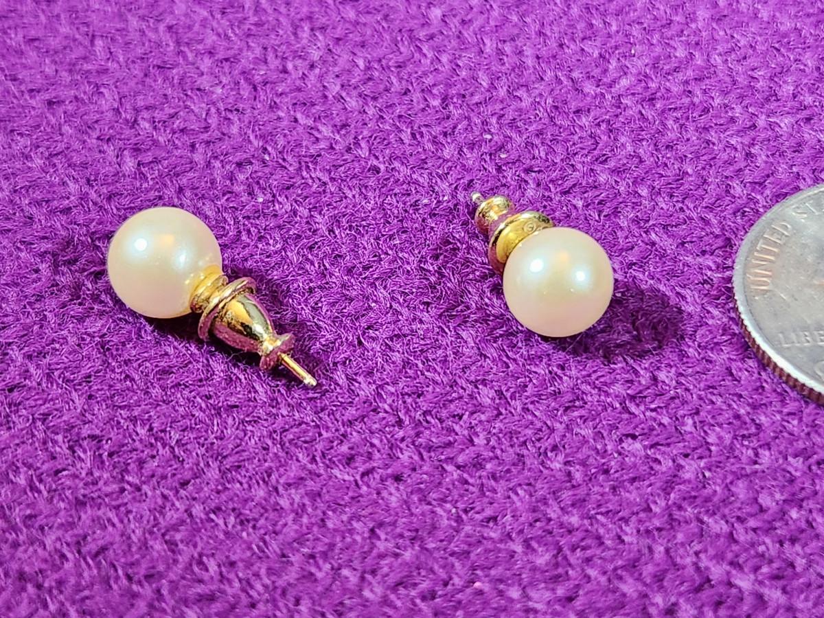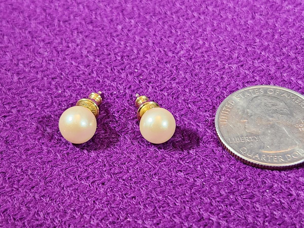 This auction lot is for a pair Gold Post Pearl Earrings. The studs are marked Monet. Very nice pair of Pearls.