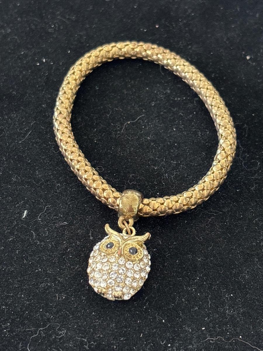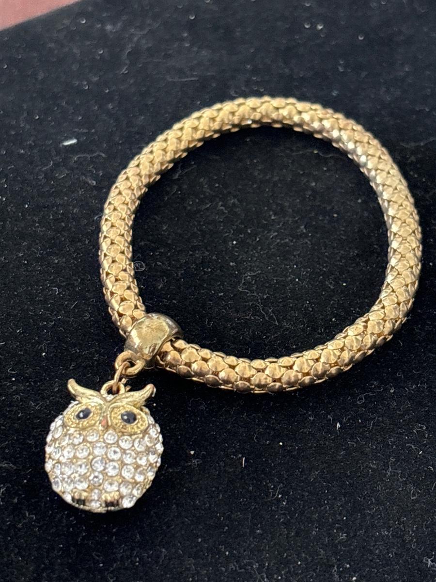 Gold & Rhinestone Owl Charm Bracelet. stretches-one Size Fits All