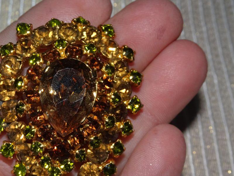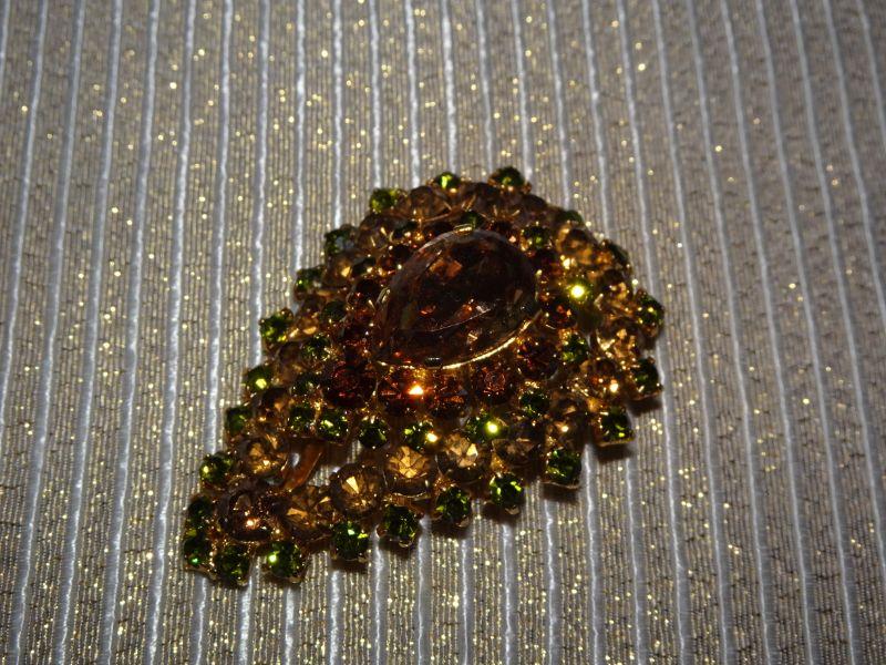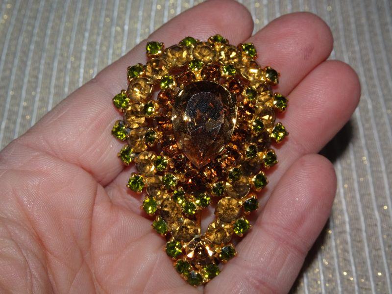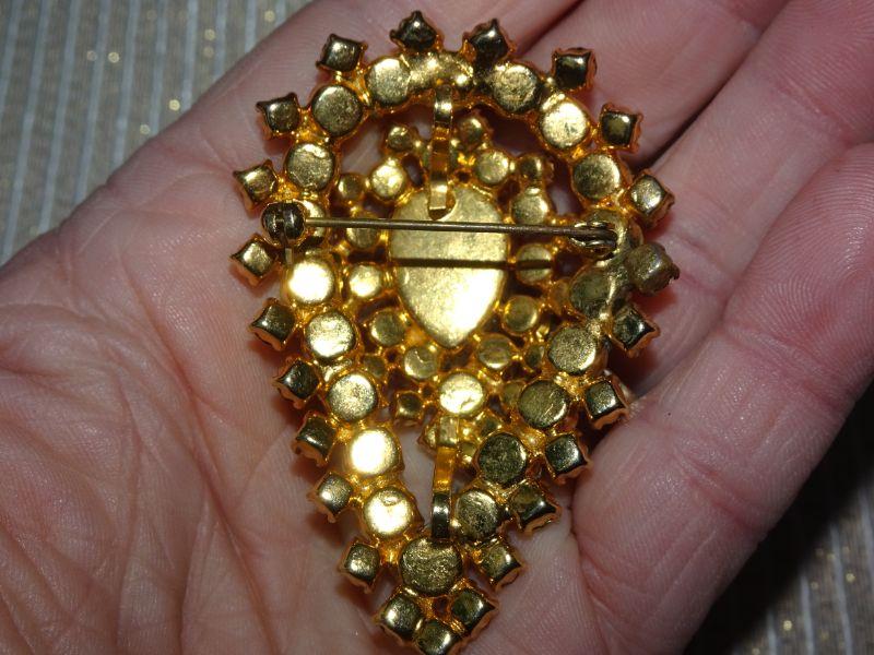 Gold Rhinestone Tear Drop MCM Brooch