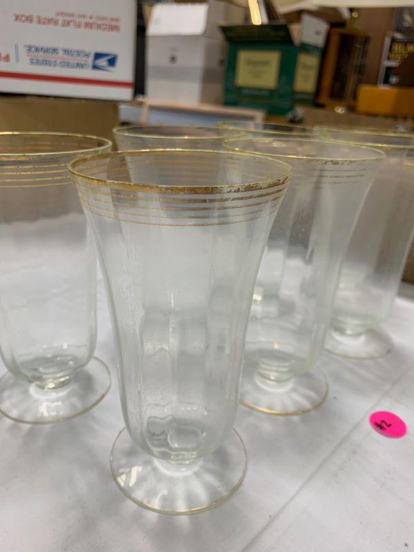 Some of the gold print is fading but glasses are in good condition. 7pcs