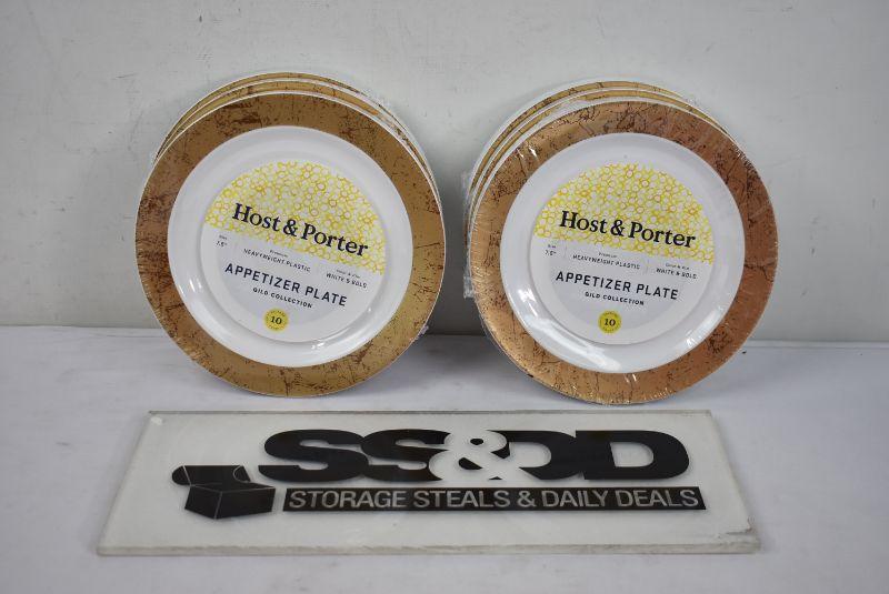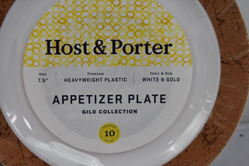 Host & Porter Gold Rim Plastic Salad Plates, 7.5", 6 packages, 10 Count Each, $18 Retail - New