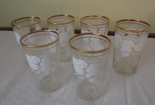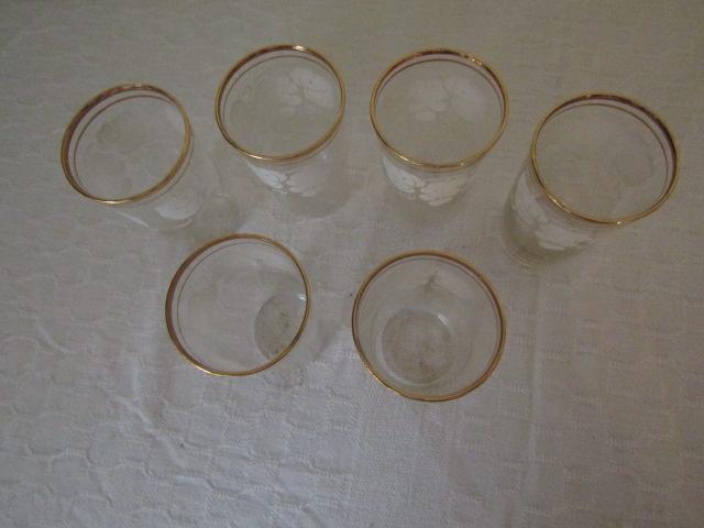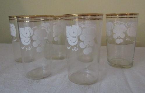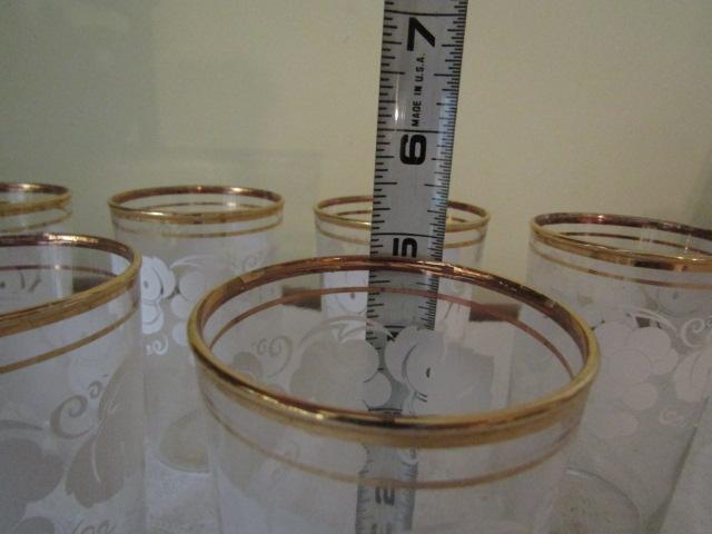 Gold Rimmed Drinking Glasses- Grape & Leaves Pattern- Set of 6