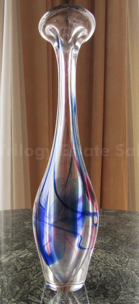Pink and blue long neck hand blown glass vase