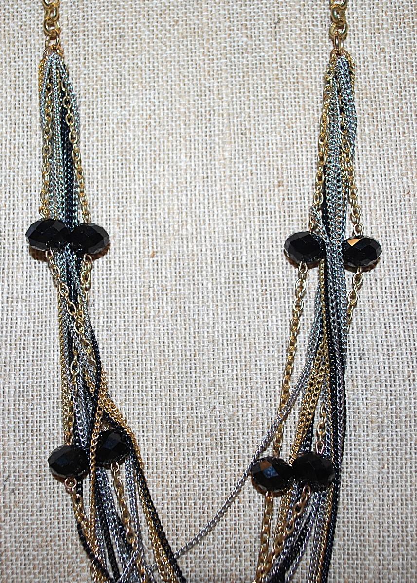 Gold, Silver & Black Colored "Lots of Chains" NECKLACE with Black Prism Bead Accents and Lobster Clasp 24" L