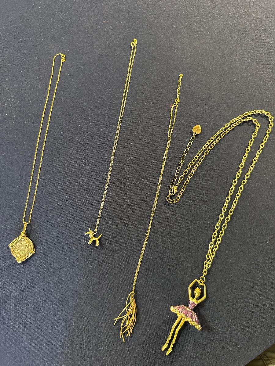 GOLD NECKLACE WITH COIN, STERLING UNICORN NECKLACE, COSTUME BALLERINA NECKLACE, GOLD NECKLACE WITH TASSLES CHARM