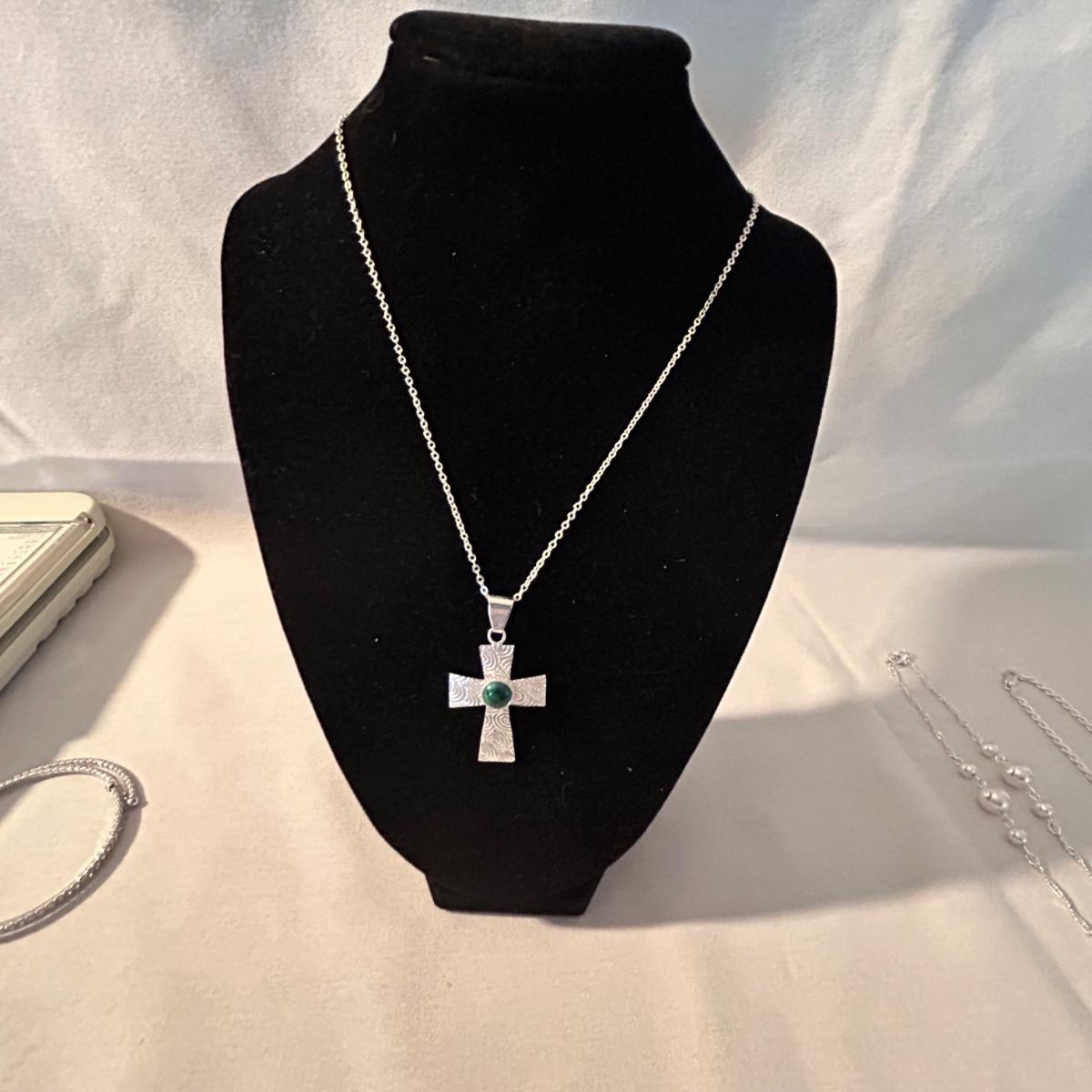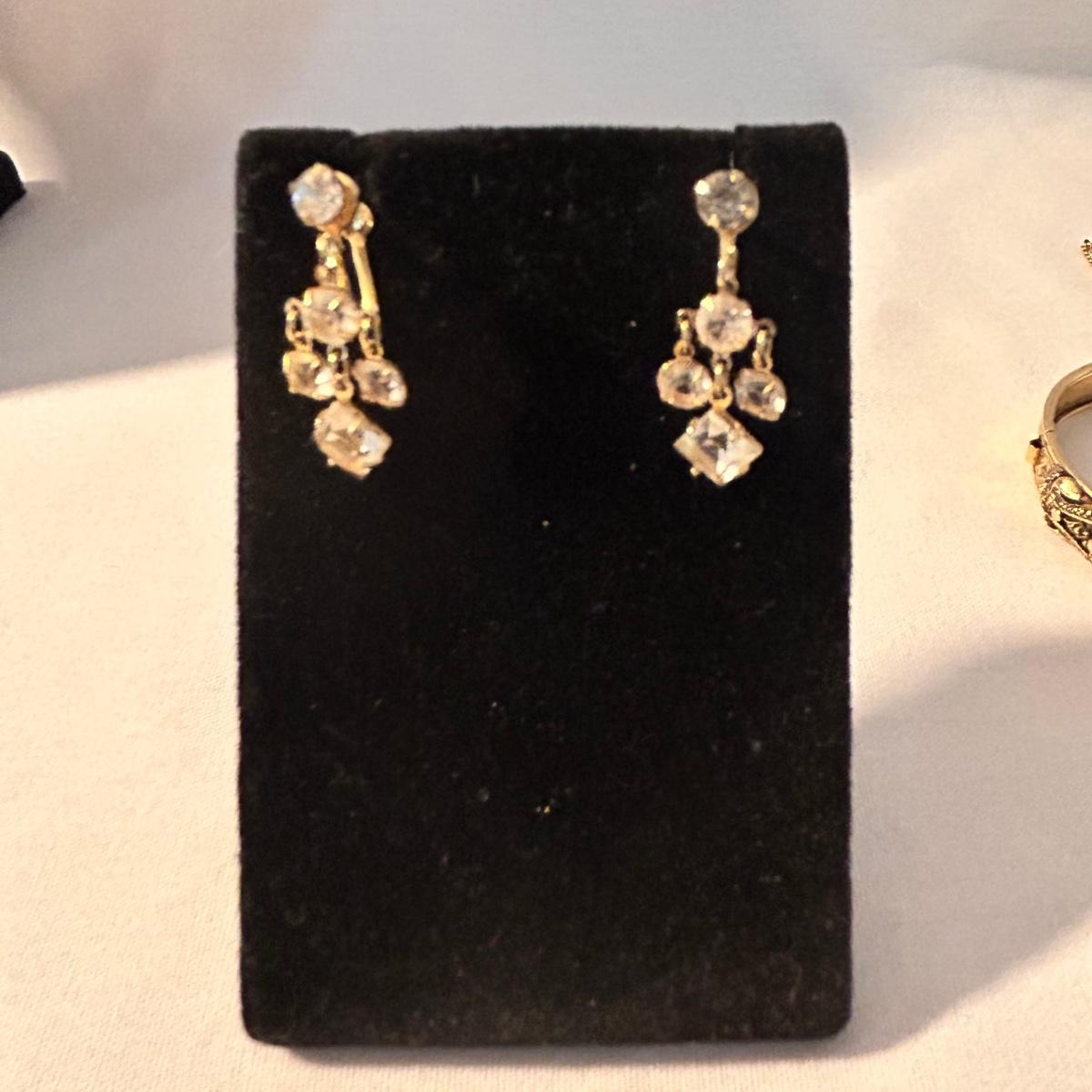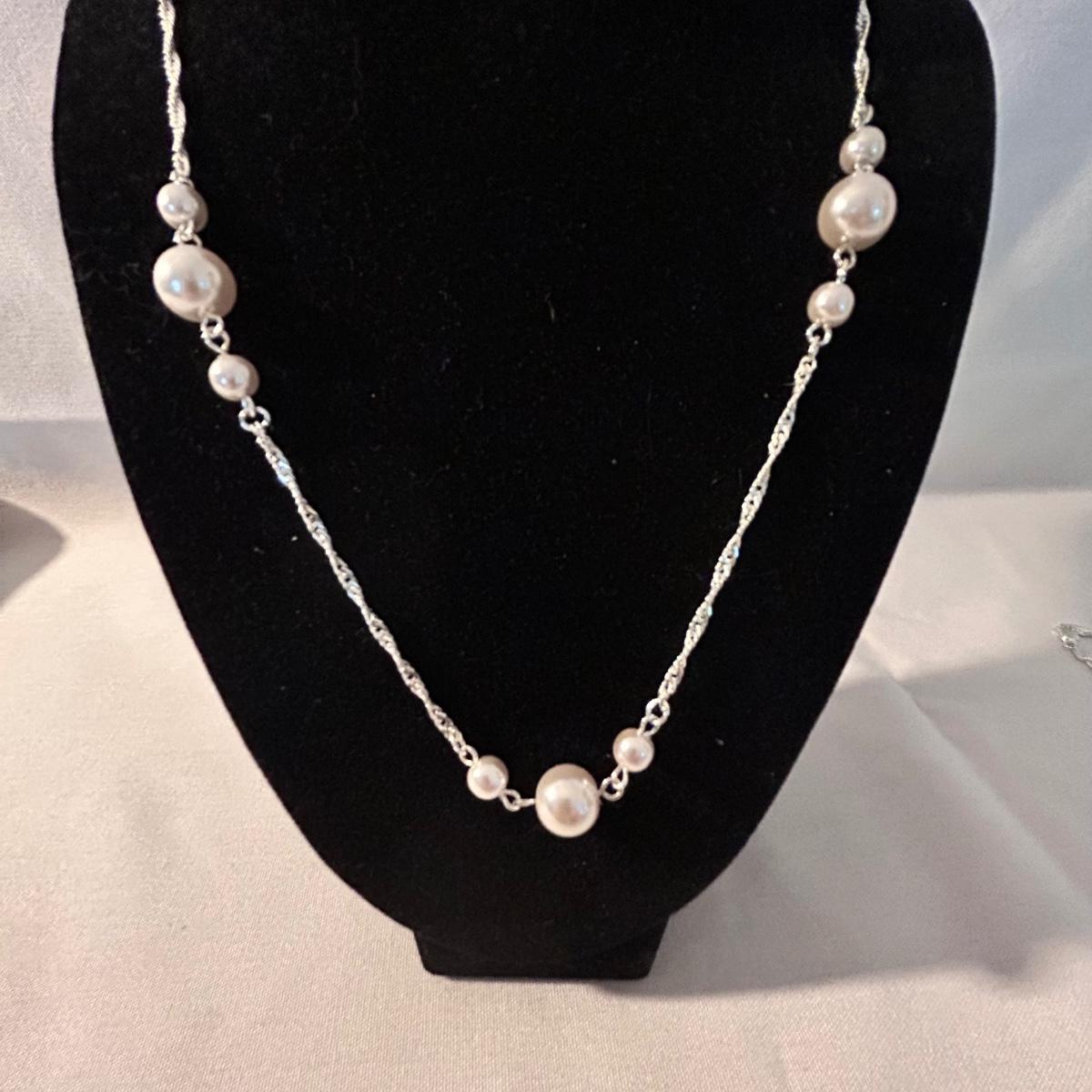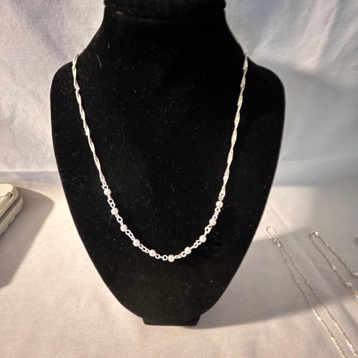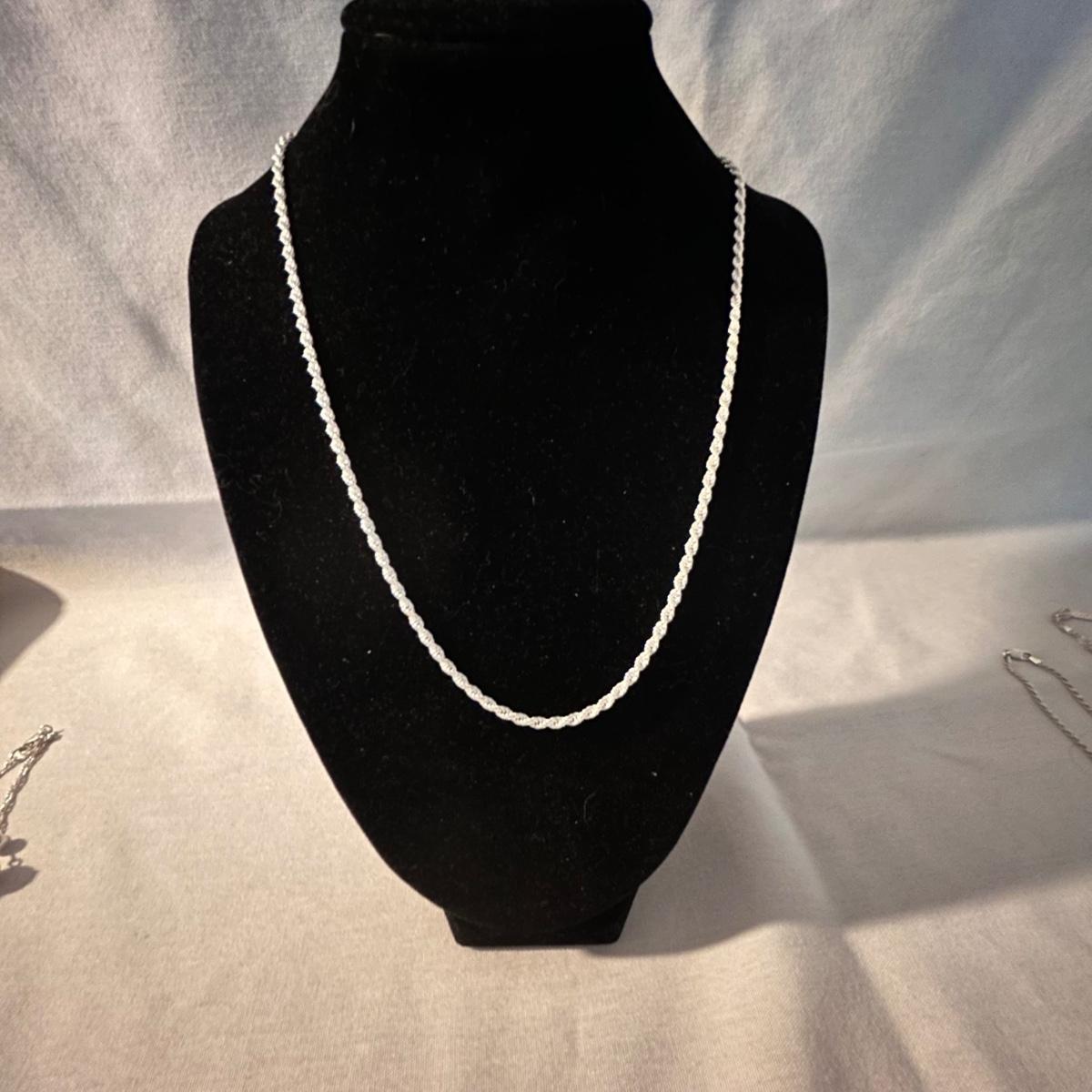 Lot includes gold and silver colored necklaces and bracelets mostly with some 925 notes in pix. Total of twelve necklaces with Napier and Avon brands, six bracelets with the smallest gold rope marked 14k. The shoe clips, Swarovski crystal pin are all very sparkly. One pair of clip earrings. Longest necklace is 12” long. Shipping available. All sales are final. No returns or refunds. Please bid accordingly.