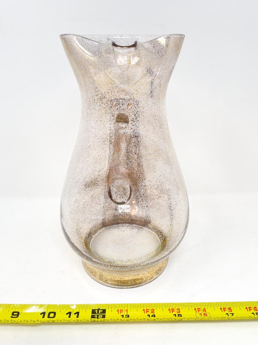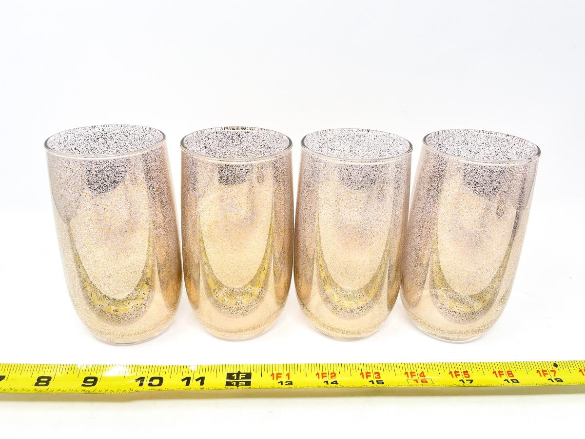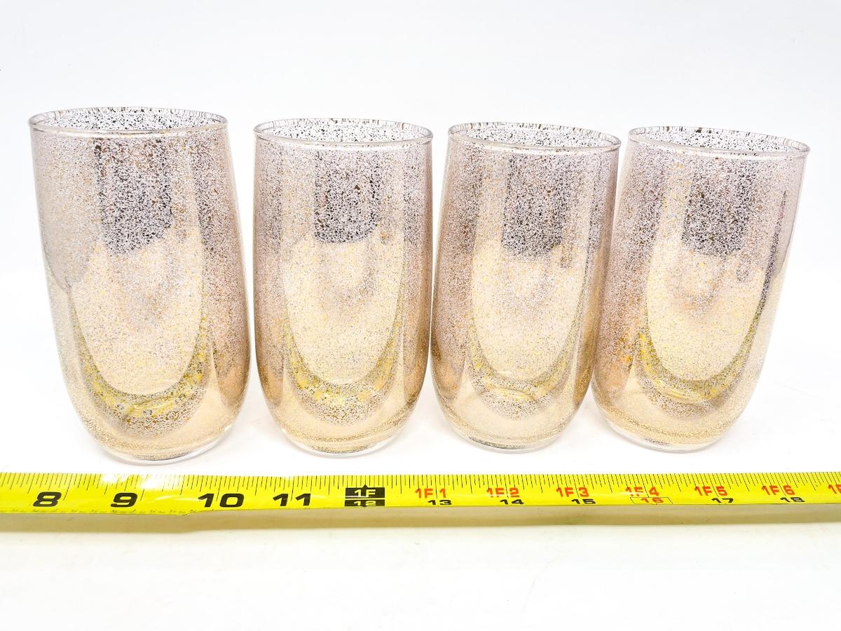 VINTAGE GOLD SPECKLED GLASS PITCHER AND 8 GLASSES