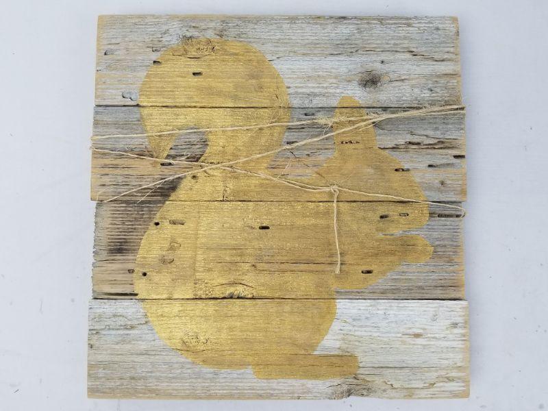 Gold Squirrel Rustic Wooden Wall Decor 13.25" x 13"